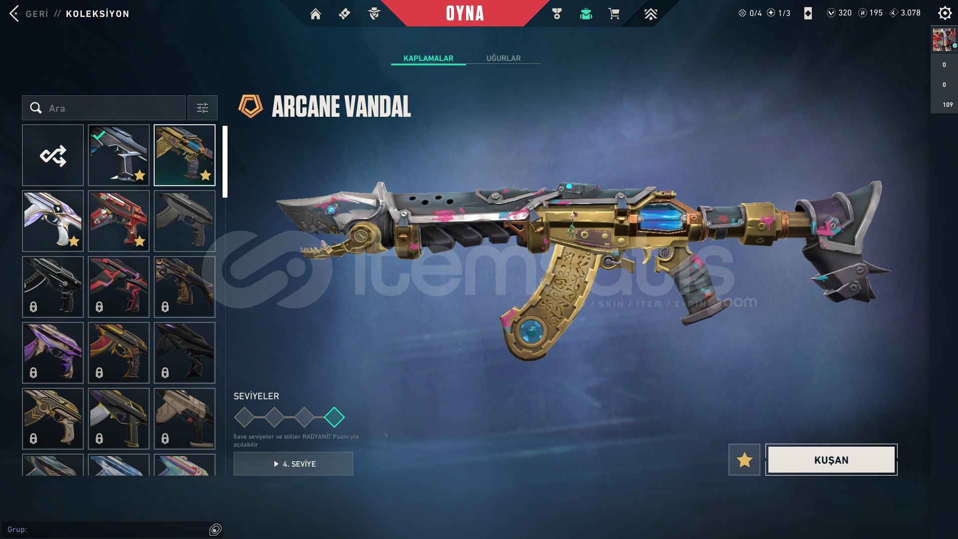🎯 Hesaptaki Önemli SkinlerEvori Dreamwings VandalRGX 11z Pro KarambitNeo Frontier SheriffKuronami VandalArcane VandalOverdrive Vandal📦 TeslimatSatın alım sonrası sistem OTOMATİK OLARAK Stoktan bilgileri teslim edecektir.Teslimat formatı: Hesap & Riotgames'e Bağlı Mail-🔒 Güvenlik ve KontrollerSatışa sunulan her hesap, paylaşılmadan önce detaylı şekilde kontrol edilir.Ban, kı...