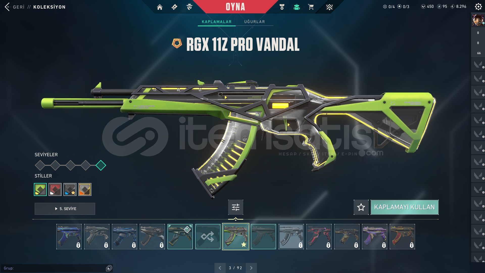 Hesap ÖzellikleriRANK : RANKED READYSKİN SAYISI : 4VP : 450TELEFON : ONAYSIZMAİL DEĞİŞMEKTEDİR OTOMATİK TESLİMDİRİSİM DEĞİŞME HAKKI MEVCUT