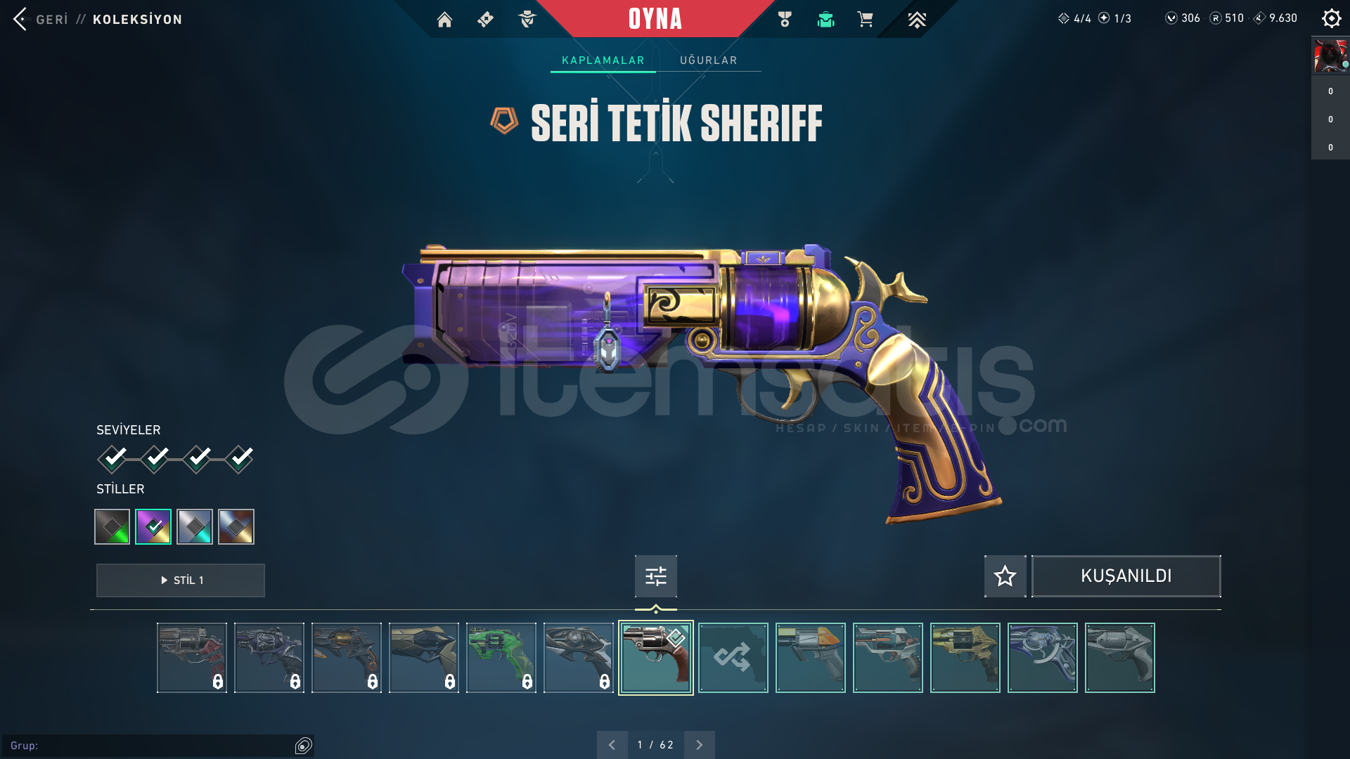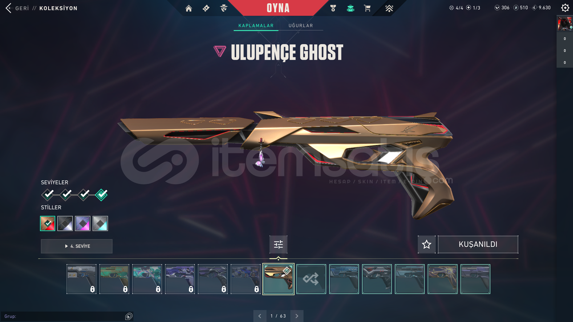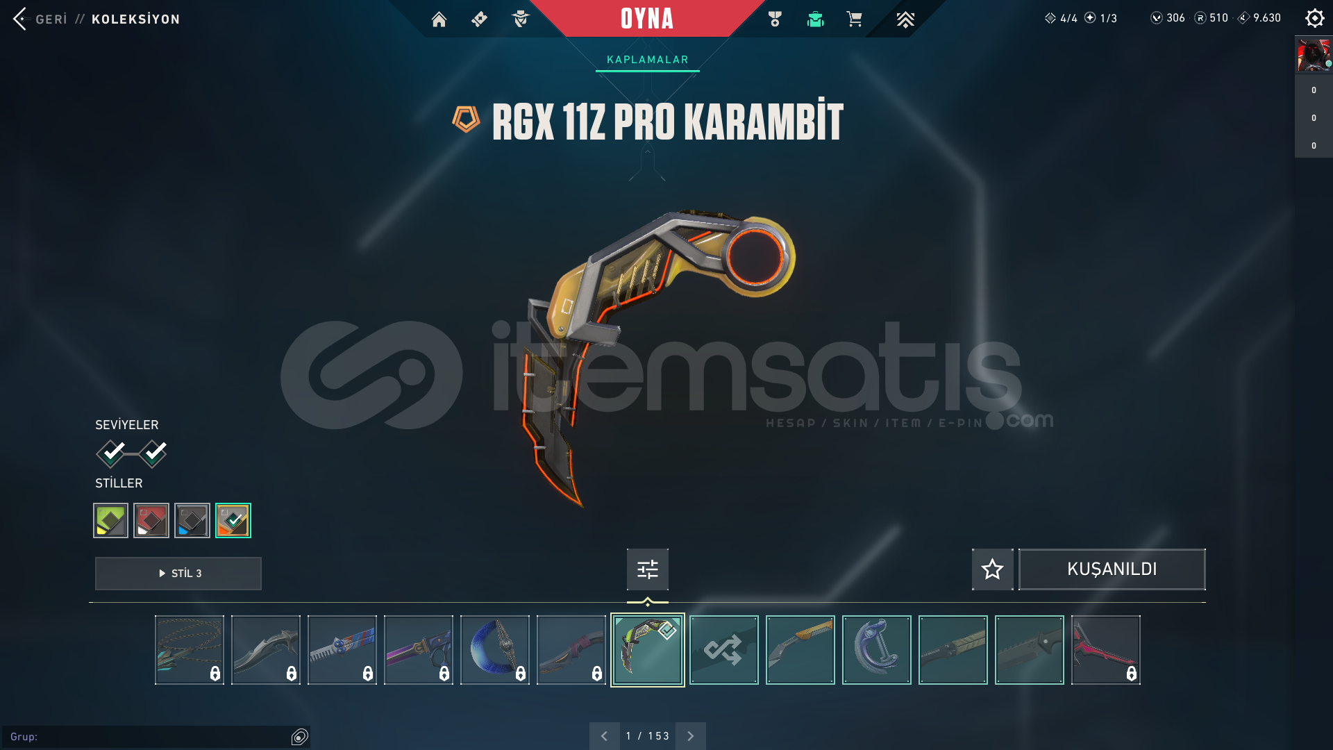 -RGX 11Z PRO KARAMBIT-Özel Harekat Kelebek-İridyum Bıçağı-Alaşım Bıçak-Delipop Vandal-Gaia'nın İntikamı Vandal-RGX 11Z PRO Vandal-Yıldız Serüveni Vandal-Seri Tetik Sheriff-İyon Sheriff-Ulupençe Ghost-İyon Operatör-Asil Classic370 leveldir