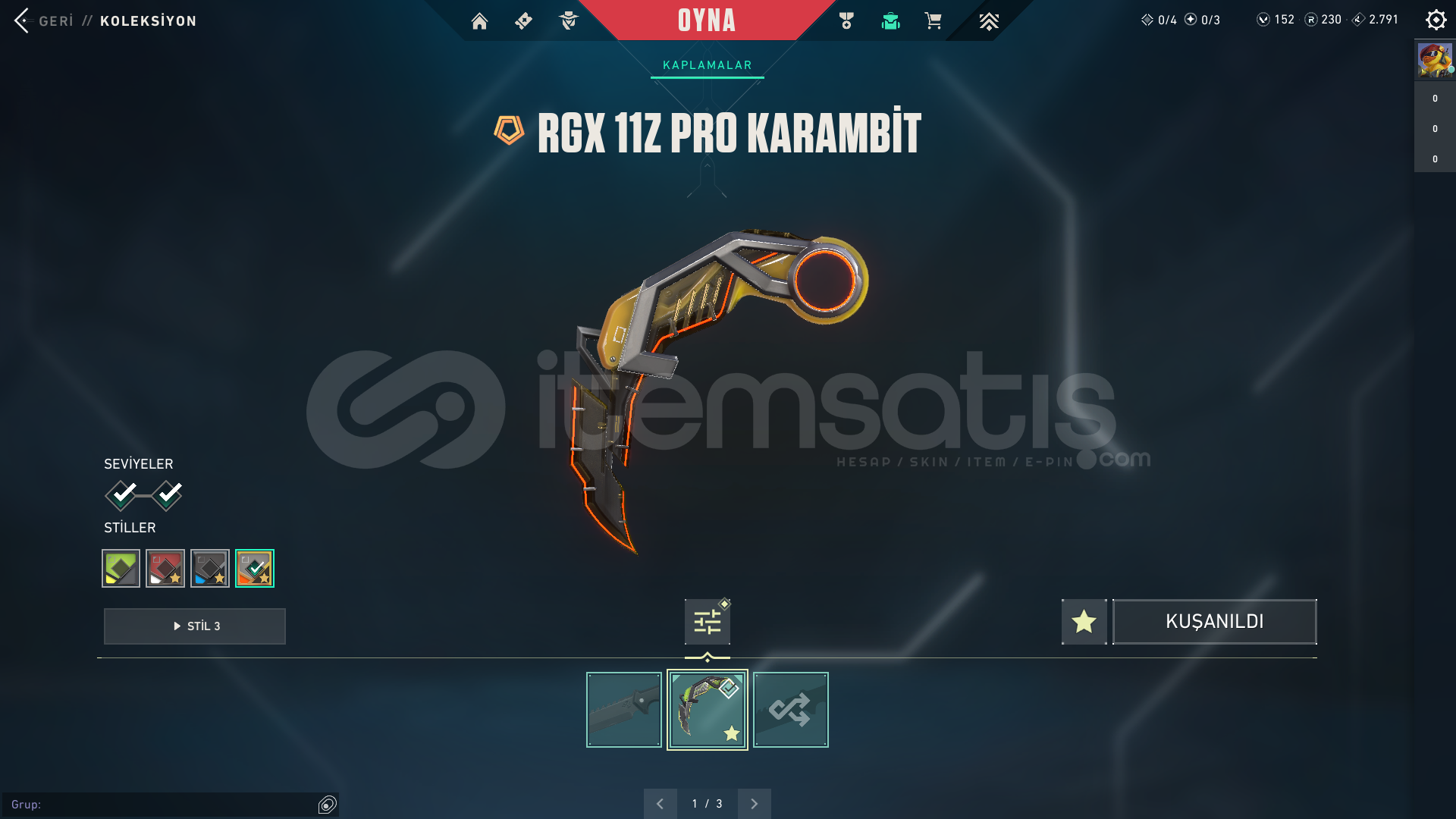 RGX KARAMBİT 2 VANDAL 15 SKİNLİ DOLU HESAP