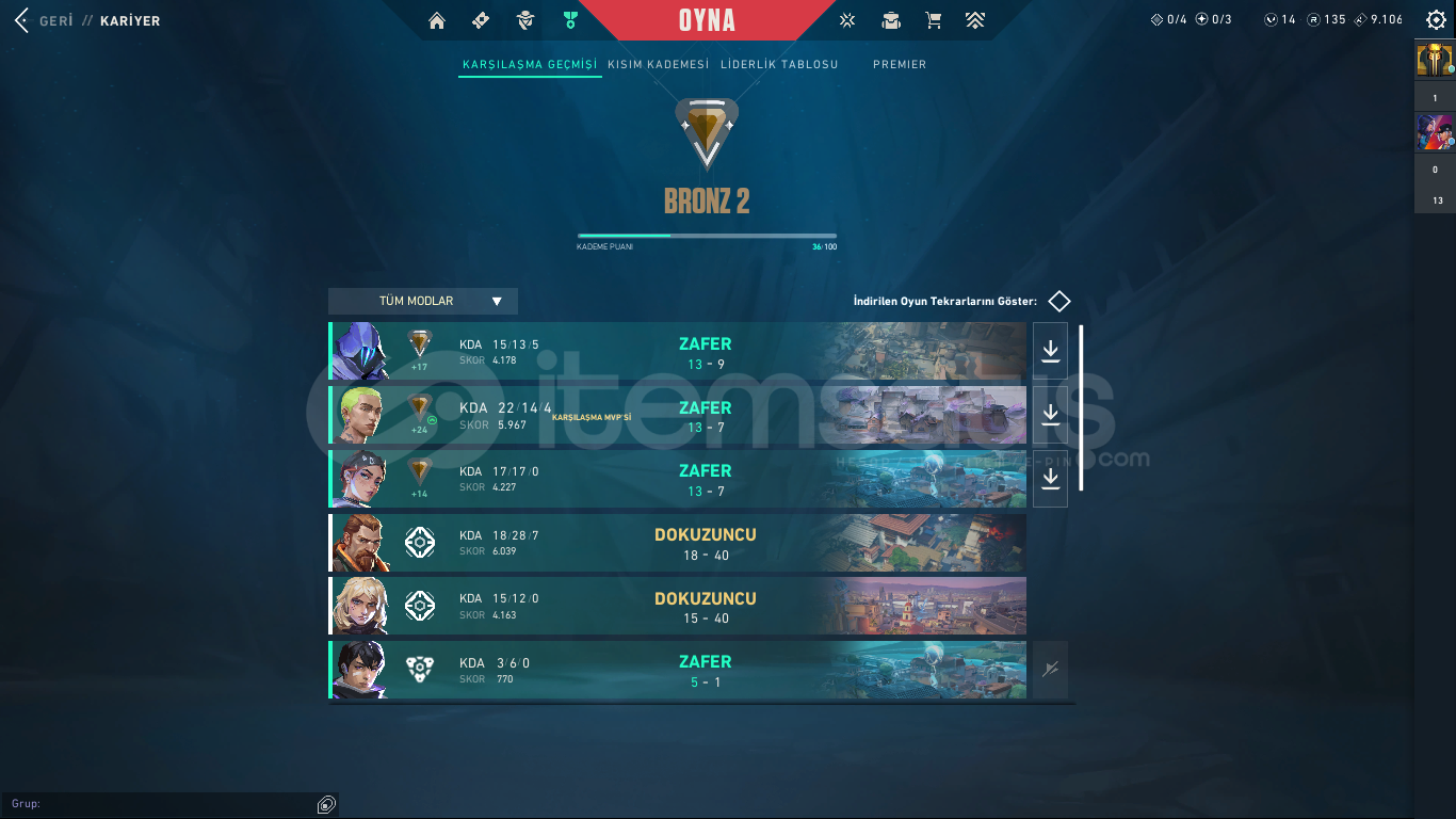 HESABIN İLK SAHİBİYİM. TR EMEK HESABIDIR.Hesabın Detayları;Rankı: Bronz 2Seviyesi: 142Ajanlar: 1 Ajan hariç tüm ajanlar açıkSkinler: Yoonseul Classic , Cesur Yürek Ghost , Ecelin Isırığı Ghost , Frekans Ghost , Anomali Sheriff , Kartuş Sheriff , Kum Fırtınası Sheriff , NanoKırılma Sheriff , Renk Deryası Sheriff , Kartuş Stinger , Yoonseul Spectre , Frekans Bucky, Frekans Bu...