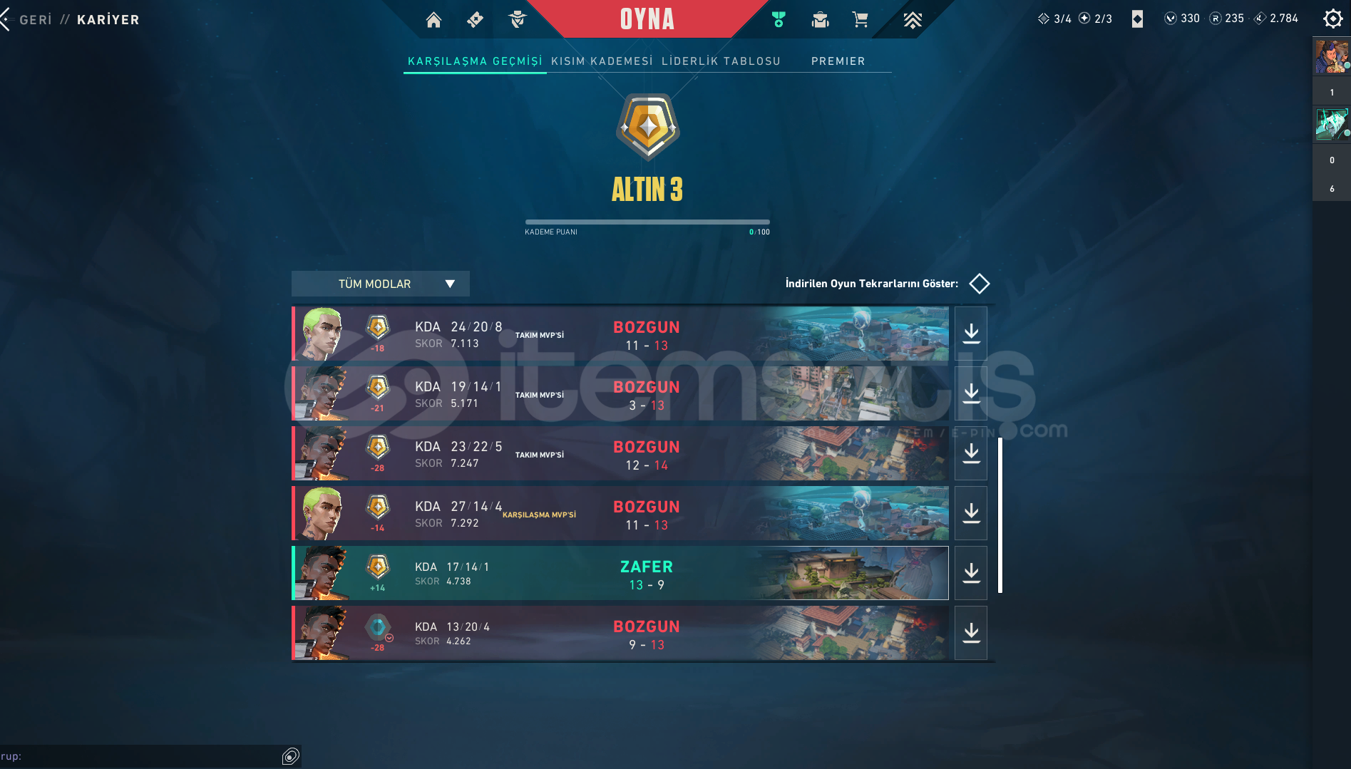 -PLAT 1 GÖRDÜ-GÜNCEL RANK GOLD 3 0 KP-BAN YOKTUR-İSİM DEĞİŞTİRME 1 OCAKTA AÇILIYOR-GAİA VANDAL-ÖZEL HAREKAT KELEBEK-RGX KARAMBİT-BATTLE PASS + OLARAK HESAPTA 300 VP VAR ALICISINA HAYIRLI OLSUN -MAİL DEĞİŞECEK