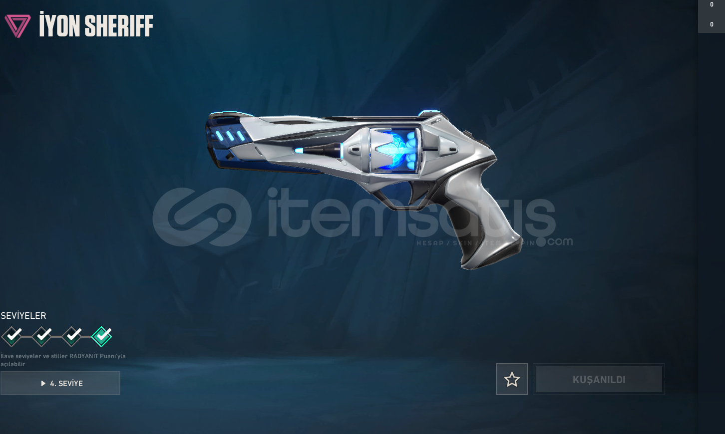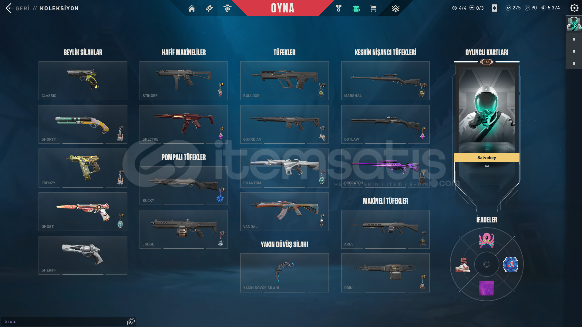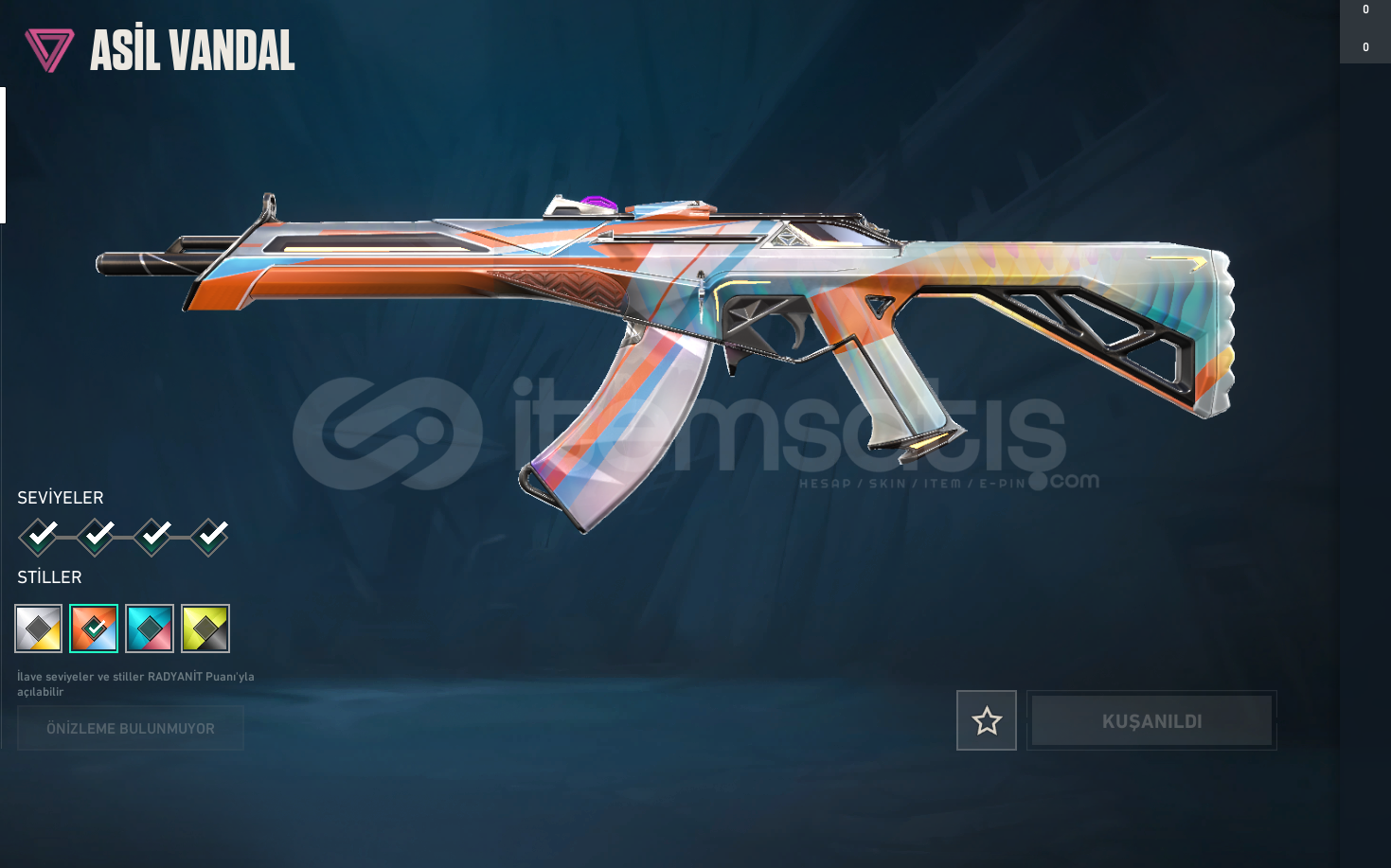 RGT KARAMBİT , İYON PHANTOM , ASİL VANDAL , ASİL CLASSİC , EVORİ RÜYA KANATLAR GHOST , İYON SHERİFF , ANOMALİ SPECTRE , YILDIZ BELASI OPERATOR VE BP DEN BİR KAÇ SKİN MEVCUTTUR