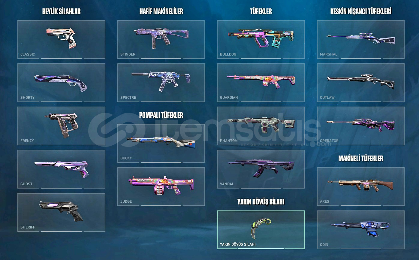 Rgx karambit,ulupençe ghost-vandal,exo vandal,anomoli sherif,protokol phantom,evrim op,sihirpunk ares,delipop bulldog.