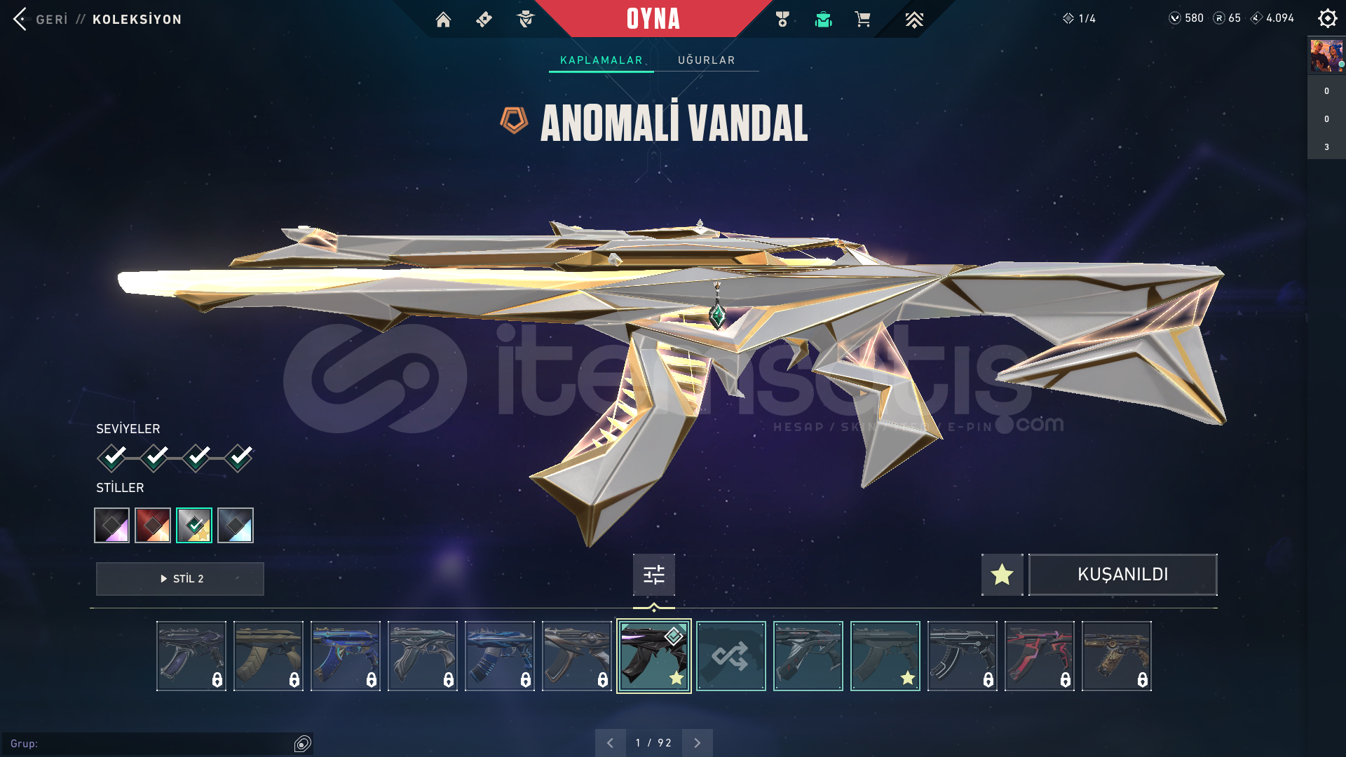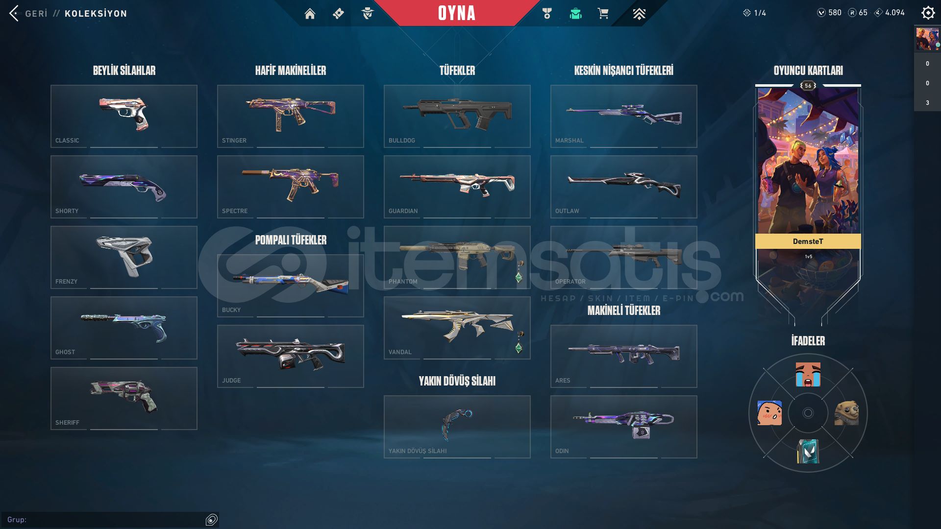 hesaptaki skinlerVANDALAnomali VandalEcelin Isırığı VandalPHANTOMÖzel Harekat PhantomKıvrık Bela PhantomBIÇAKRGX PRO 11Z KarambitEcelin Isırığı BıçakSHERİFFPROTOKOL SHERİFFAy gezgini sheriffSolarex SheriffGHOSTCesur Yürek GhostEcelin ısırığı GhostFRENZYİyon FrenzyUzay Geçidi Frenzy580VP65RP5K KİNGD DİĞER SİLAHLARDADA SKİNLER MEVCUTTUR AMA BP D...