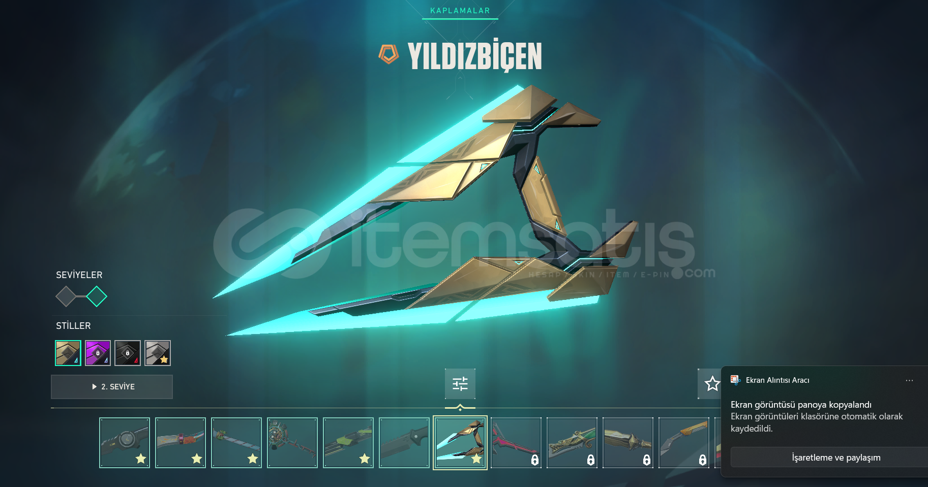 🔥 FULL KOLEKSİYONLU VALORANT HESABI 🔥Tamamen dolu, nadir ve popüler skinlerle donatılmış aktif hesap!Hem görsel hem performans olarak üst düzey set içeriyor.✨ İçerikler:🗡️ RGX Katana 💥 RGX Vandal + Ejder Vandal + Neptune Vandal⚡ Oni Phantom + Spectre (Yerçekimi / 💣 Yağmacı Sheriff + Fatih Ghost⭐ Yıldız Biçen Bıçak 💎 Bi...