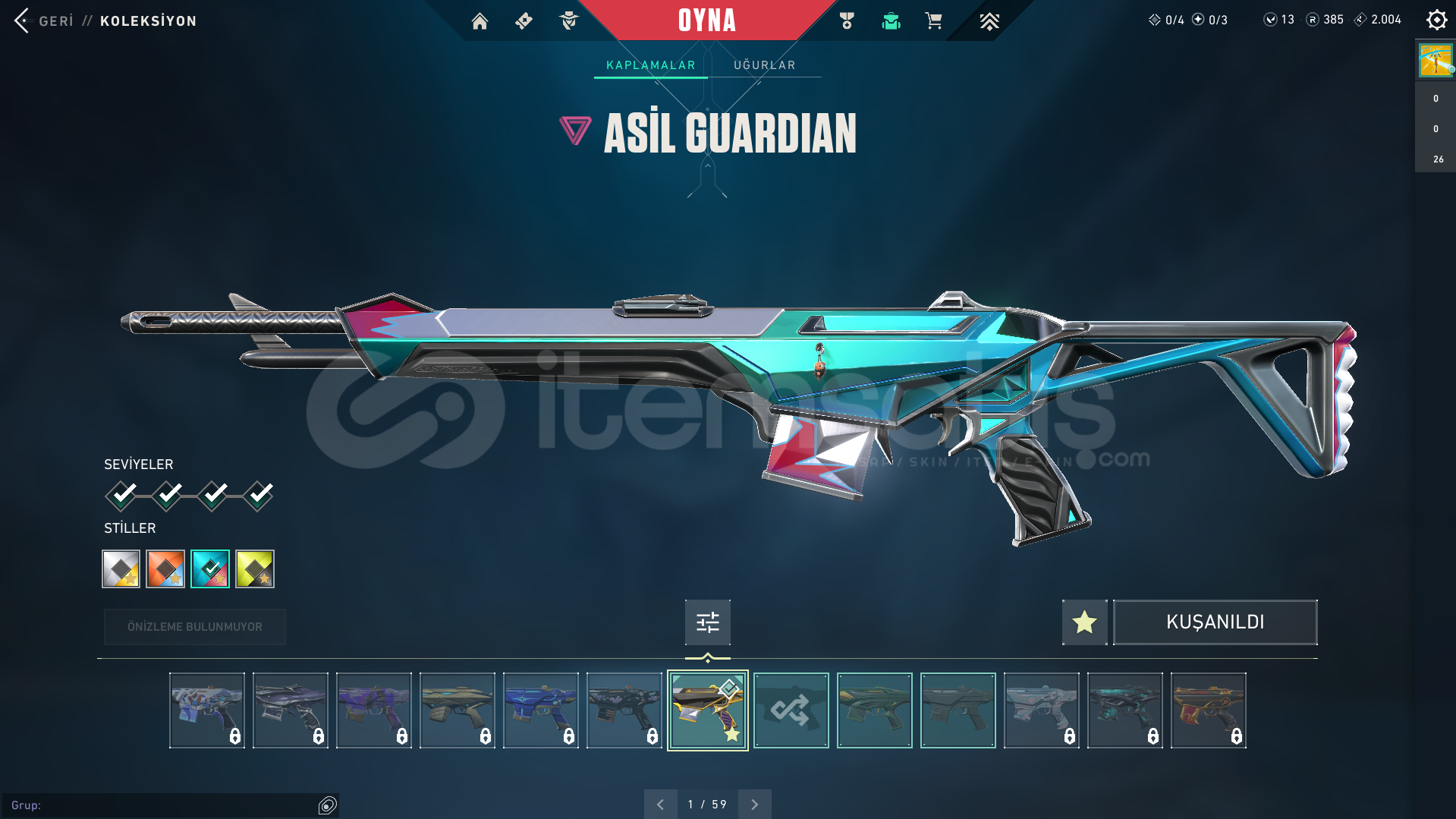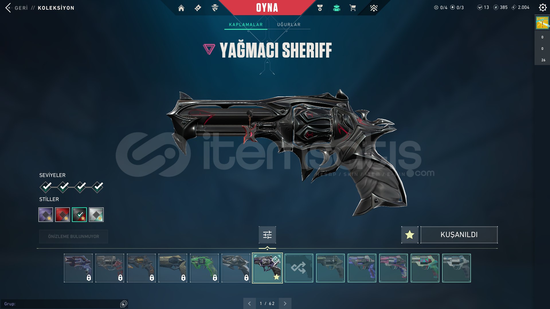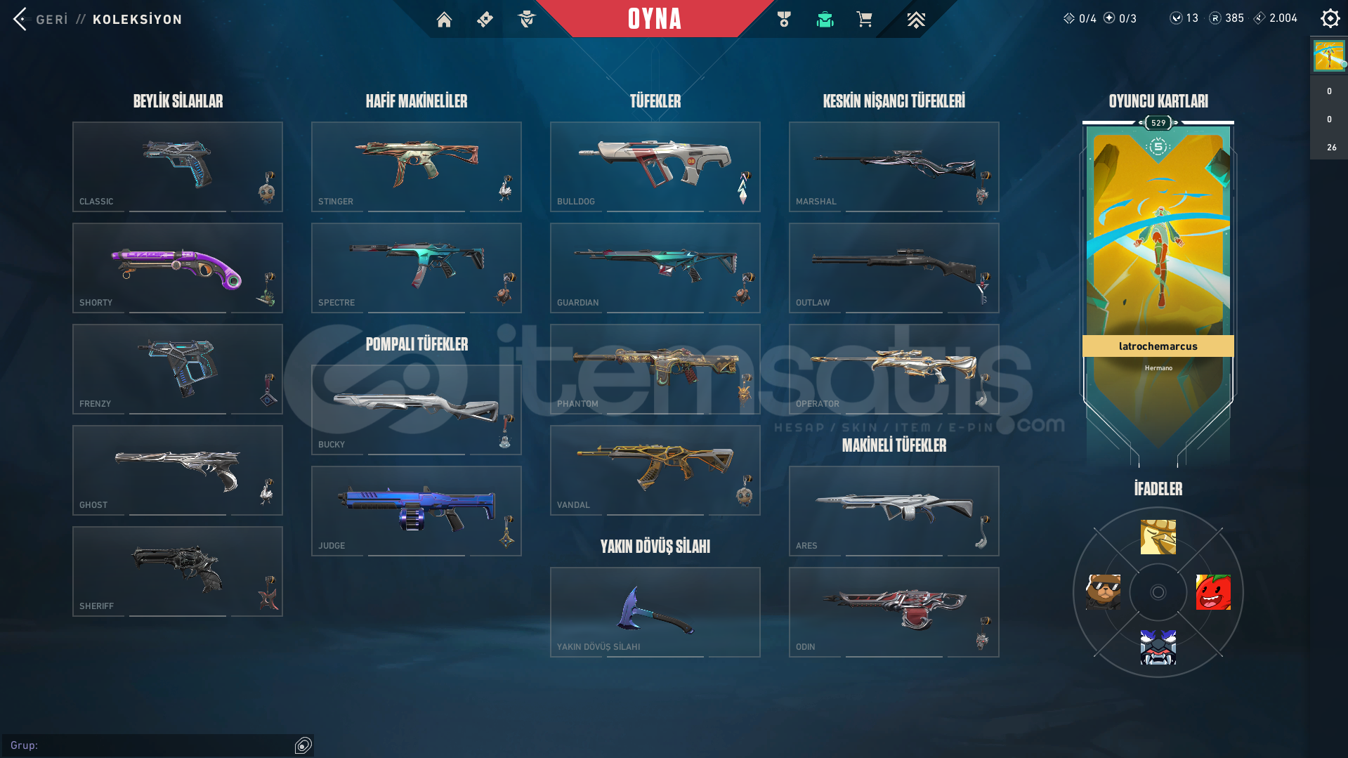 RGX VANDAL YAĞMACI VANDAL ONİ PHANTOM YİTİK OPERATOR ASİL GUARDİAN FATİH MARSHAL ASİL SPECTRE İYON ARES İYON BUCKY FATİH STİNGER YAĞMACI SHERİFF FATİH GHOST RGX FRENZY RGX CLASSİC SARMAL CLASSİC PRİZMA BALTA BULUNAN HESAPTIR.