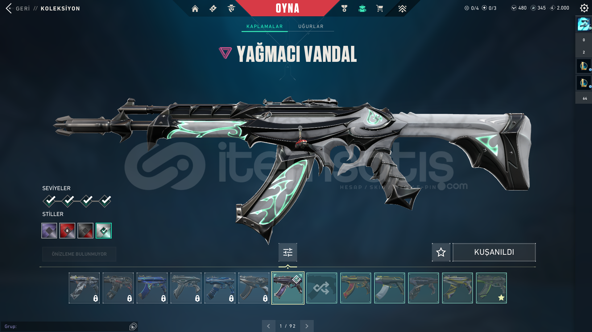 RGX VANDAL YILDIZ BELASI VANDAL EJDER ATEŞİ VANDAL YAĞMACI VANDAL ASİL VANDAL ALTIN AFET VANDAL ÖZEL HAREKAT PHANTOM İYON PHANTOM YAĞMACI OPERATOR YAĞMACI SHERİFF FATİH GHOST ALTIN AFET HANÇER ARTİZAN FLÖRE BULUNAN HESAPTIR.