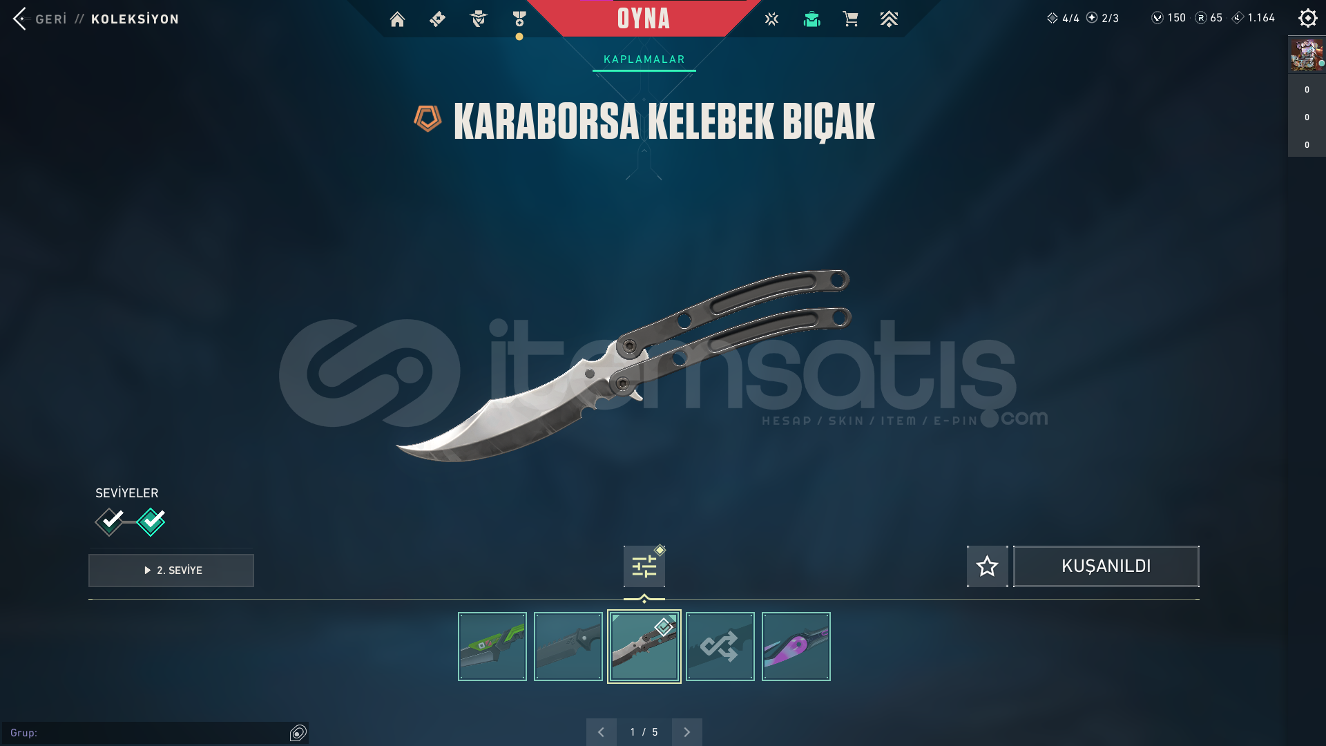 ⭐ Hesabın içinde Karaborsa Kelebek Bıçak , Kuronami Vandal , RGX 11z Pro Vandal , Yağmacı Sheriff , Gaia'nın İntikamı Phantom , Devinim Bıçak , Kartuş Hançeri , Soğuk Çelik Operator skinleri bulunuyor.