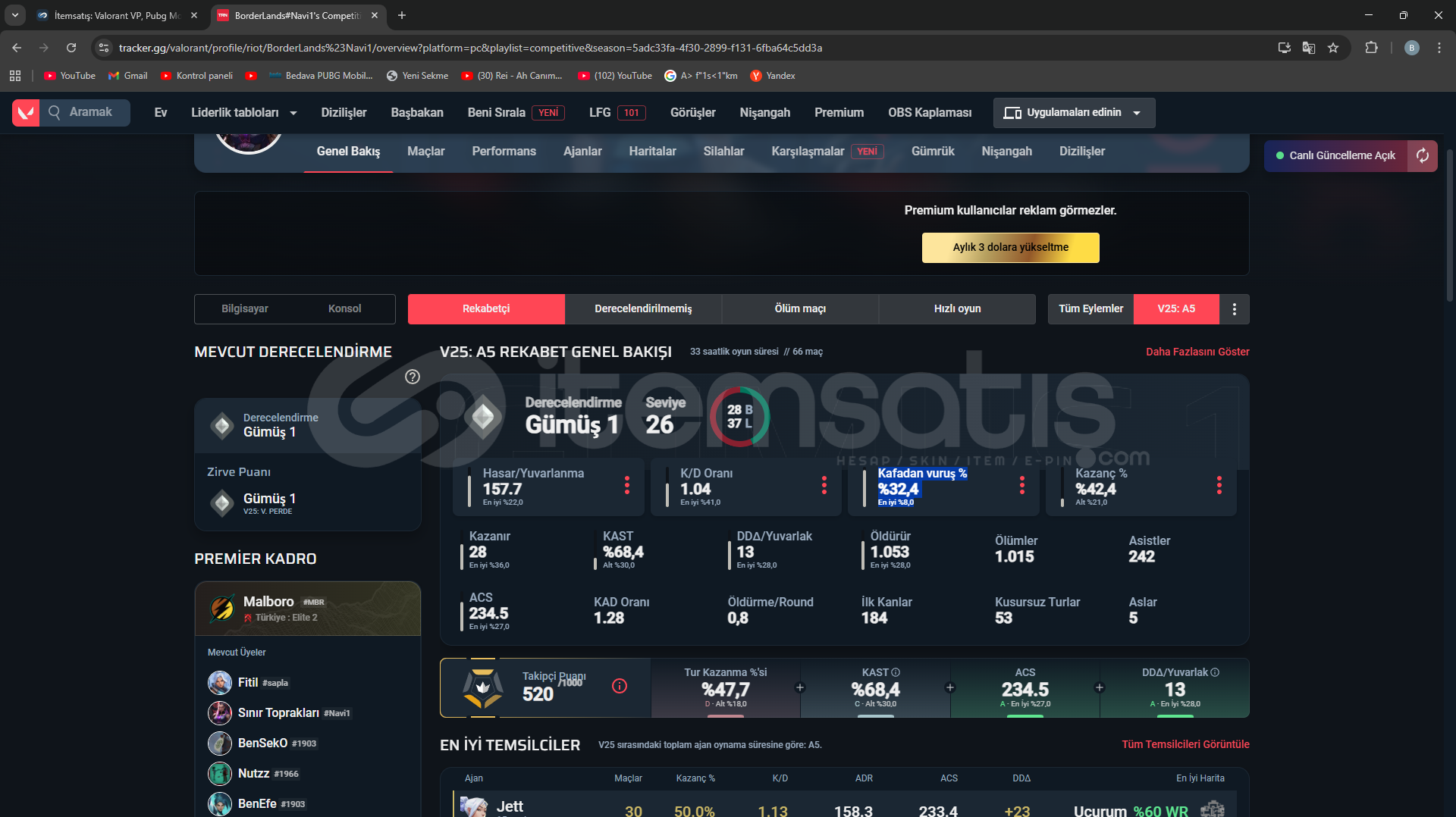 sadec cesur yürek vandal bronz 3 %32 hs oranı mmr yüksek hesap