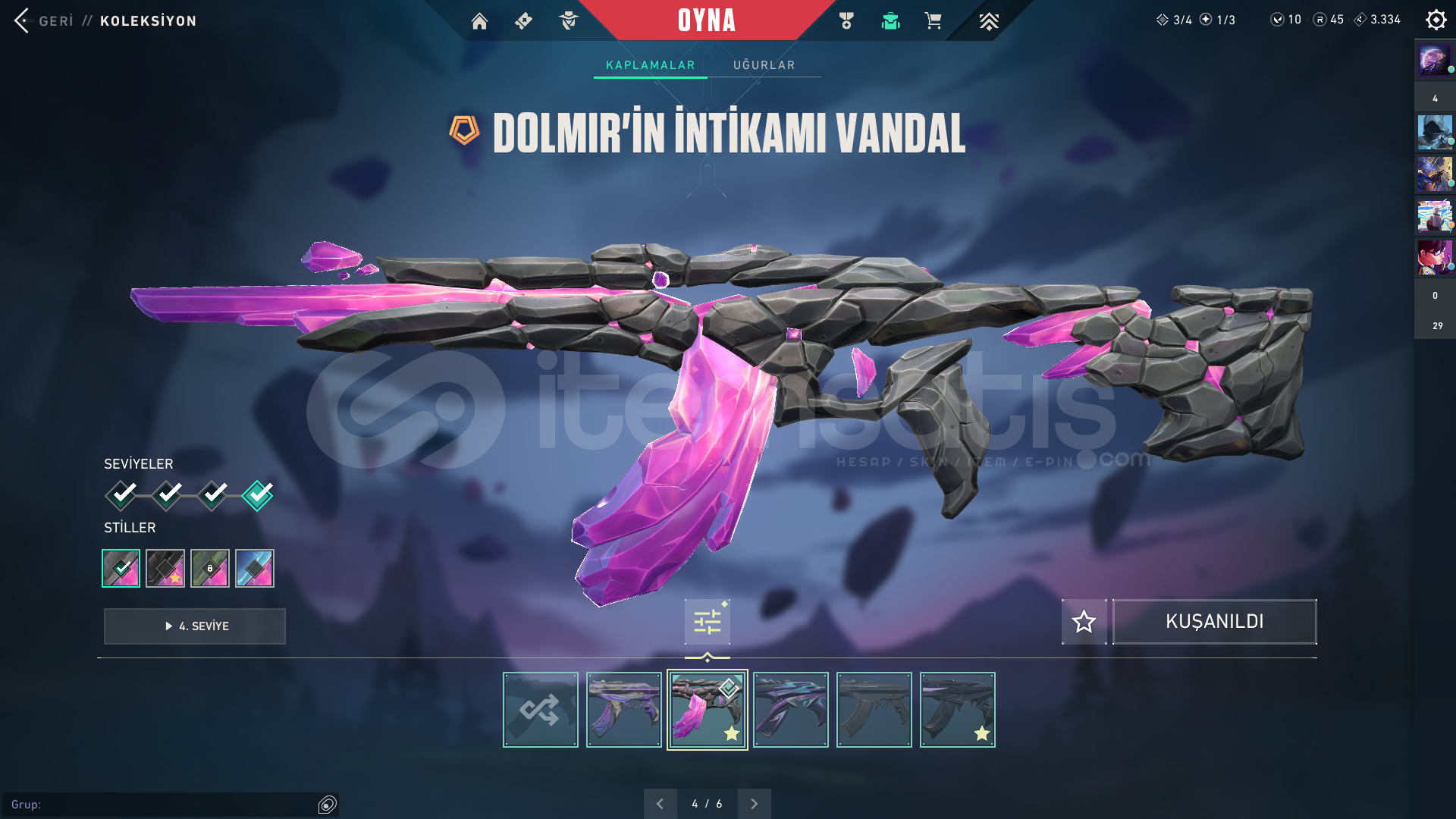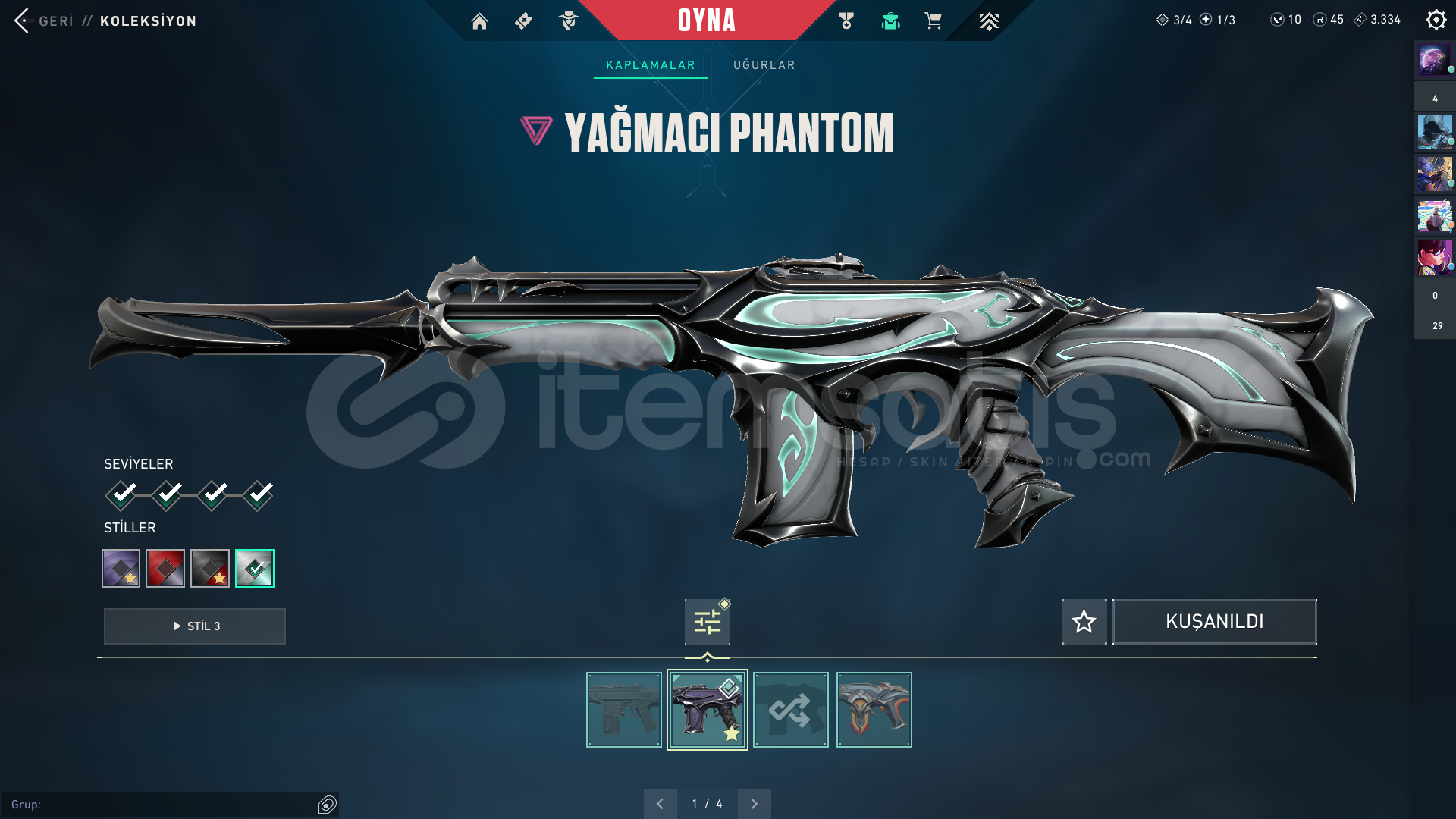 • 💎 50+ skin (vandallar, phantomlar, bıçaklar vb.)