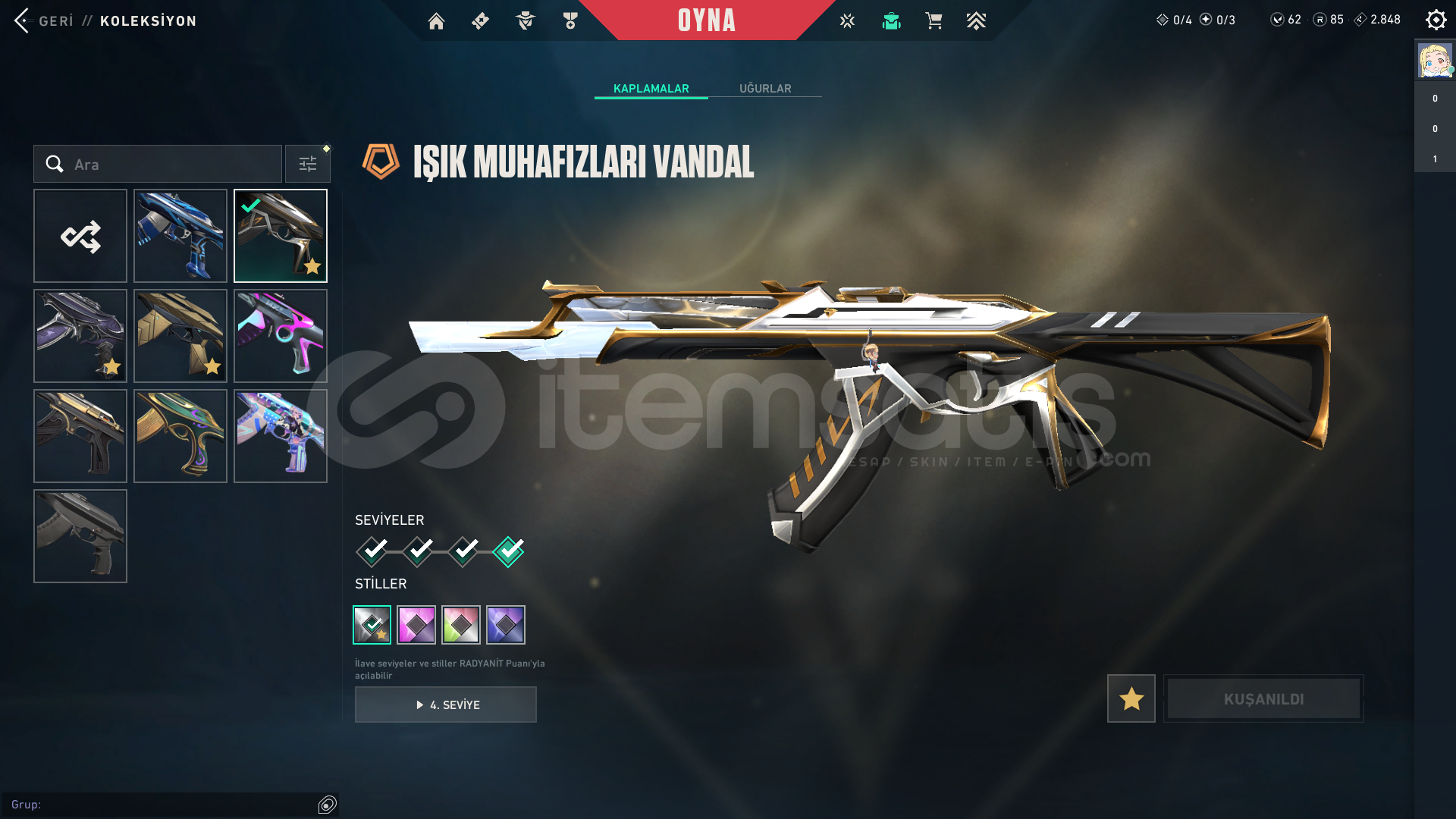 • Vandal Skinleri -Yıldız Belası(Tüm Renkler Açık )-Yüksek İrtifa (Sova desenli)-Yağmacı Vandal (Tüm Renkler Açık)-Devinim-Himaye-Işık Muhafızı (Tüm renkler açık)-Kum Fırtınası-Popstar Vardır