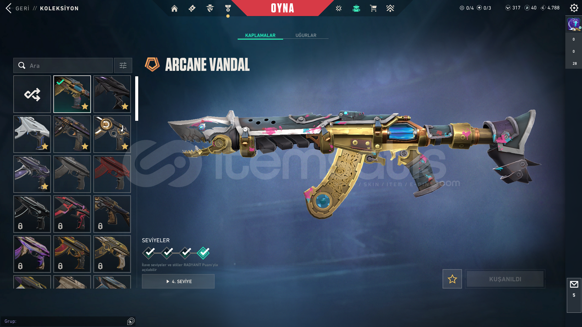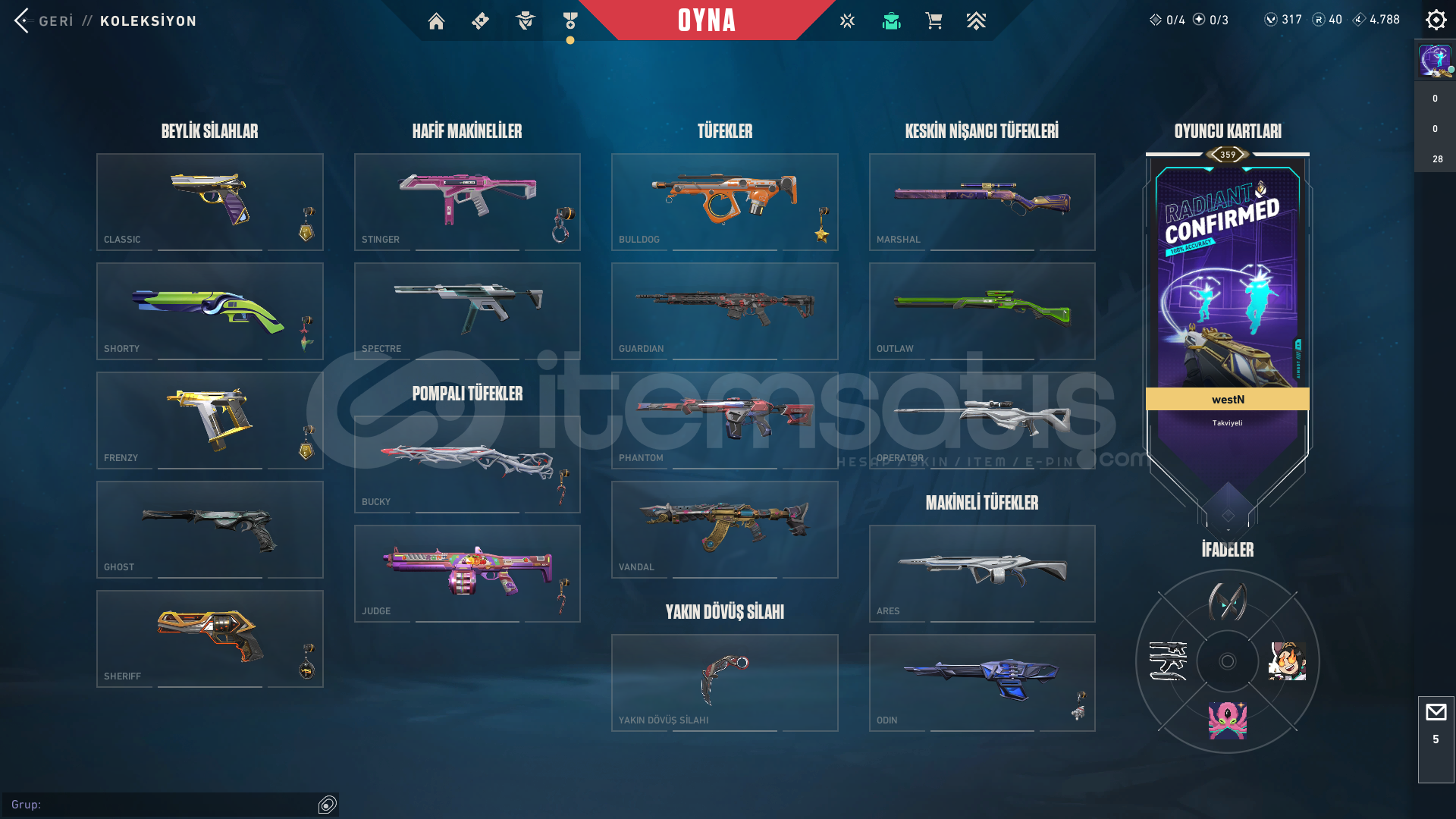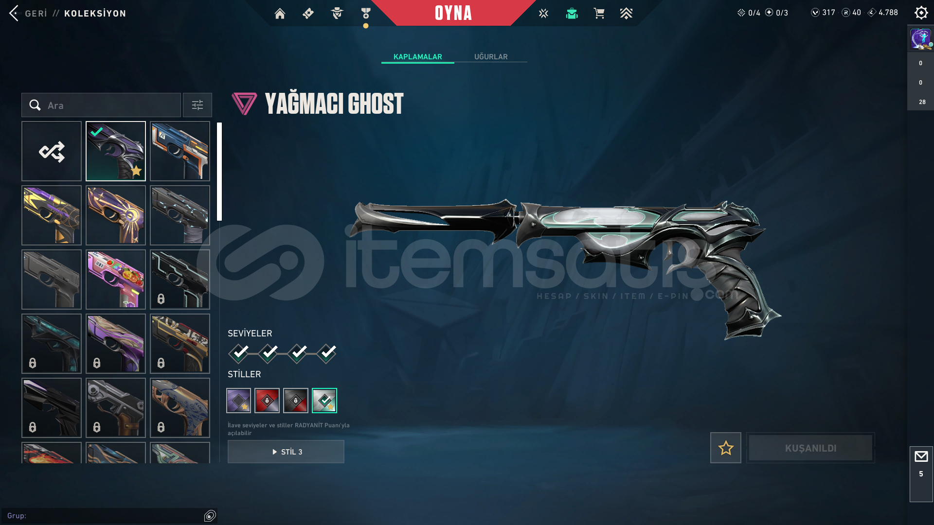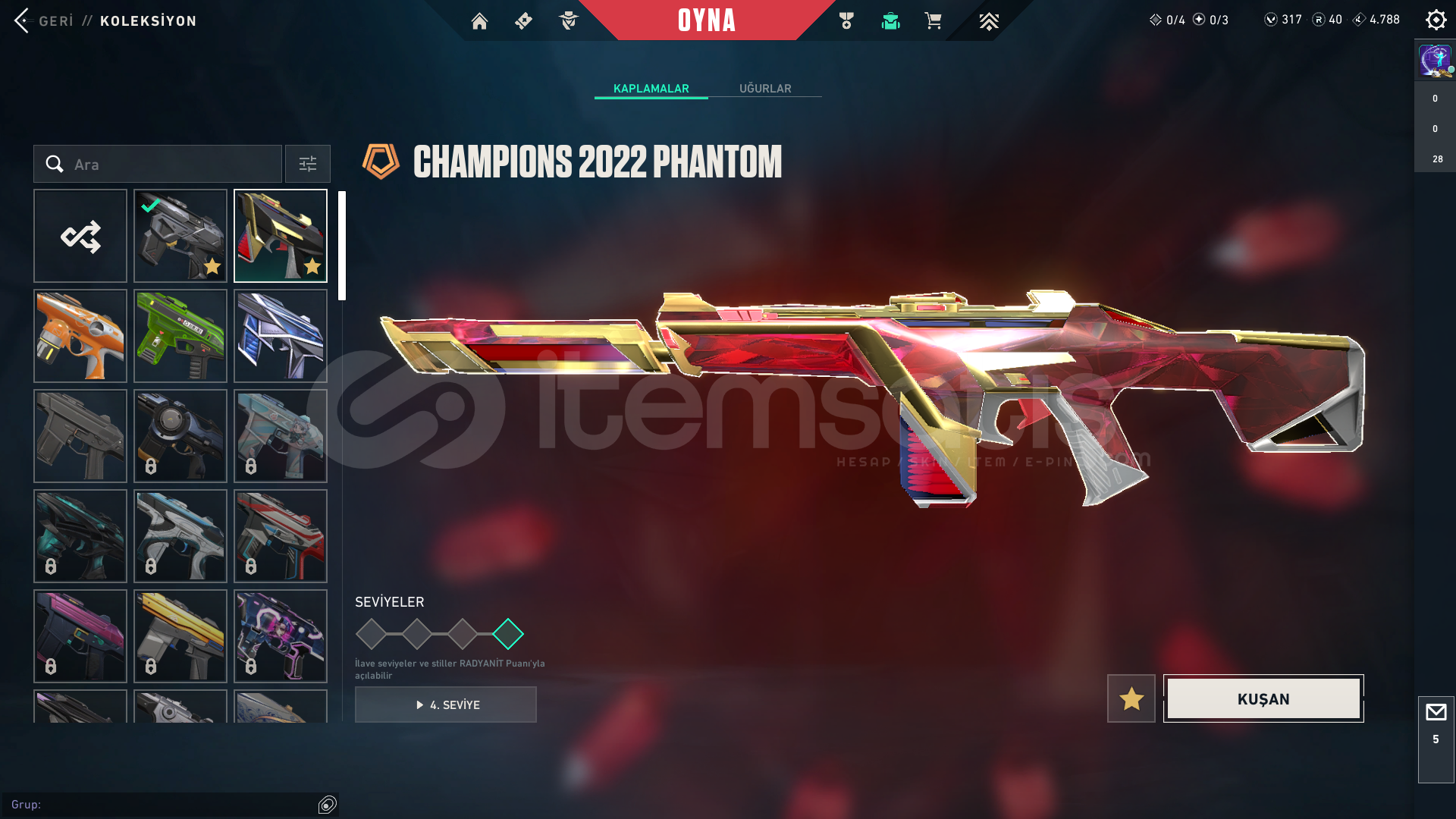 AÇIKLAMAYI OKU!!Hesapta 120+ SKIN Bulunmaktadır. (NOT: SKINLERIN Renk seçenekleri SKIN Sayısına Dahildir!)Hesapta Oyuna Birdaha Gelmeyecek Olan ARCANE Vandal ve CHAMPIONS 2022 Bulunmakta.Hesap Seviyesi: 359Maksimum Ulaşılmış Rank: AltınTüm Ajanlar Açıktır.Artık Oyunu Oynamadığım İçin Satışa Koydum Varsa Sorularınız DMden yazınız.⭐