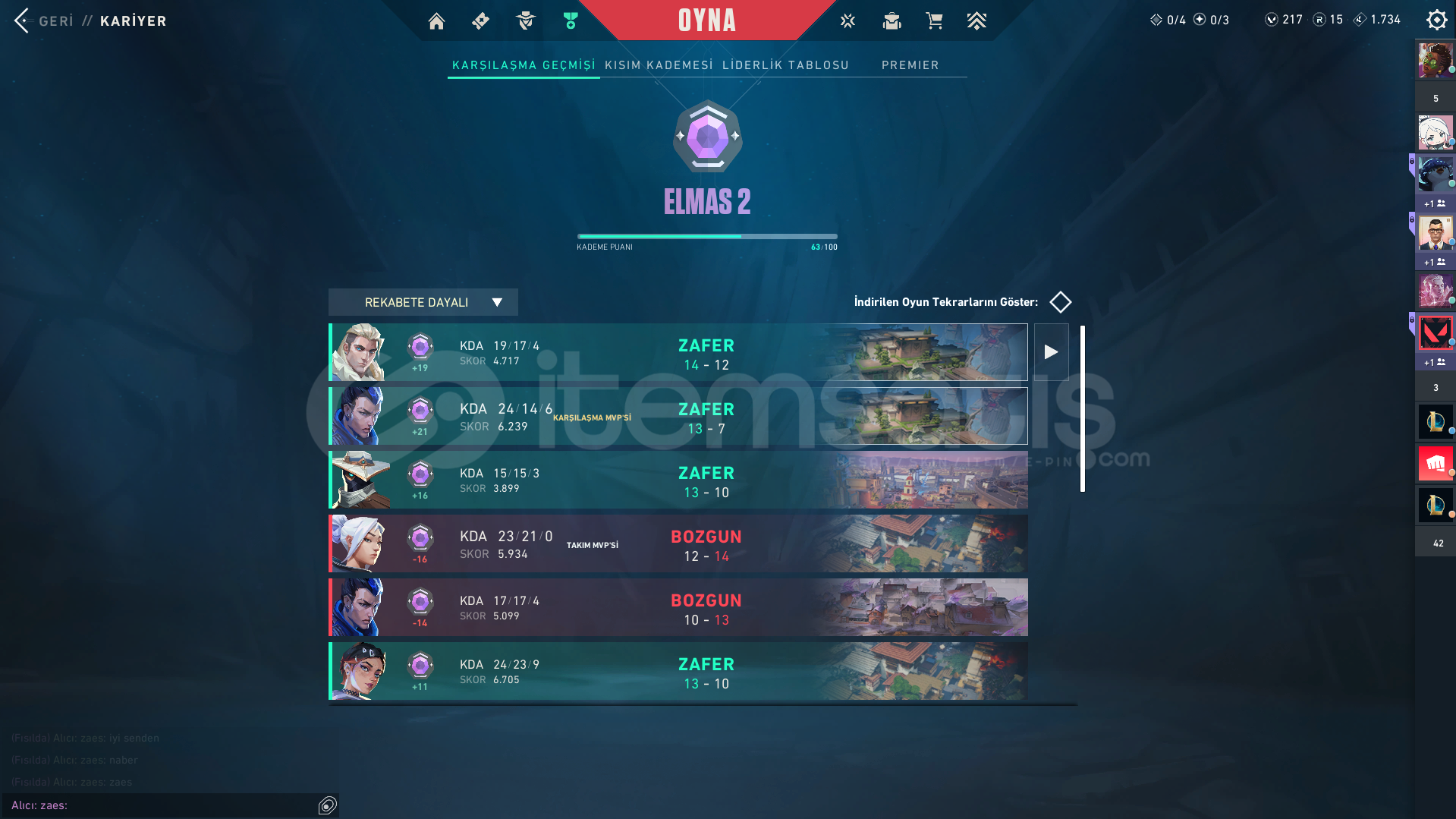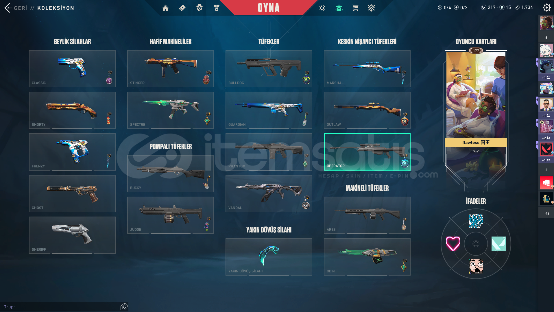 Valorant Kendi Main Hesabımı Satıyorum.Hesap TR Serveridir.Uygun Fiyatta İndirim Olur.İçinde 217 VP - 15 Radyanit vardır.Hesabın Peak Rankı Yücelik 1.Aktif Rankı Elmas 2.2 Tane Animasyonlu Bıçak (Birdaha Mağazaya Gelmeyecek)VCT 2025 KARAMBİTBETA BIÇAK6 Tane Animasyonlu VandalKaos VandalFelaketin Kalbi VandalSürat Canavarı Vandalİyon Vandal Yitik VandalFaz Koruyucu Vandal1 Tane GhostSihirpunk Ghos...
