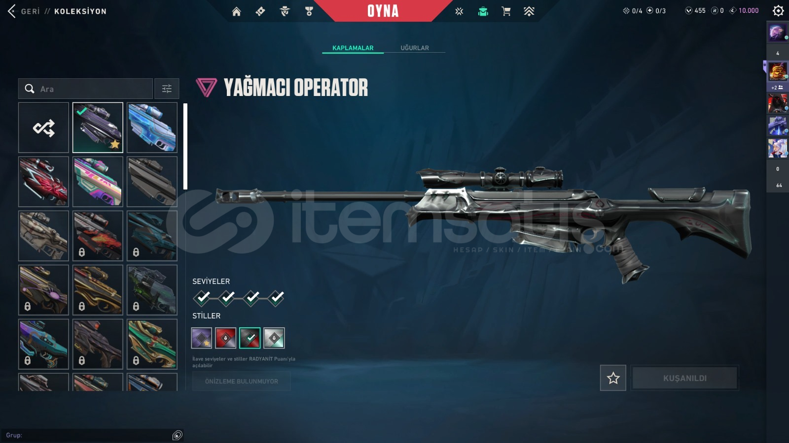Pazarlık payı vardır ciddi alıcılar yazsın10 TANEDEN FAZLA FOTOGRAF KOYULMADIGI İCİN BAZI SKİNLER GÖZÜKMÜYOR HER SİLAHTA SKİN VARDIR