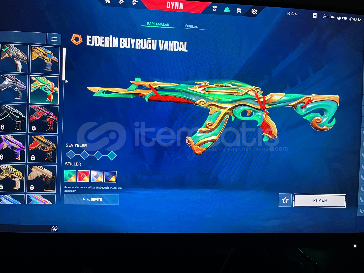 Emek hesabım satılıktır hesapta ayrıetten 1000 Vp bulunmakta ve 1 sezon savaş bileti var toplam 11 tane yükseltilebilir skin bulunmakta olup toplam yatırma geçmişi 6900 tlClassic: VCT 2025 TH ClassicGhost: Fatih GhostSheriff: Anomali, Seri TetikPhantom: Spectrum PhantomVandal: Asil, Zamanın Ötesi, Arcane, Ejderin Buyruğu VandalBıçak: RGX Karambit, Beta Bıçakhesap anlattığım şekildedir.h...