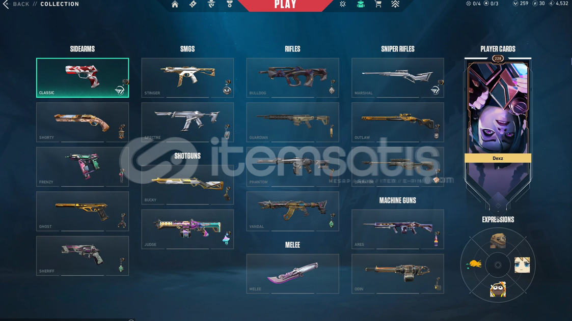 Hesapta sadece 3 silahta skin bulunmamaktadır Sezon 3 hesabıdır. Şuande rankı Dia 2 Peak Rankı Zümrüt 1 dir. LoL ve TFT de birçok skin ve derecesi vardır isterseniz bana dm den yazabilirsiniz.