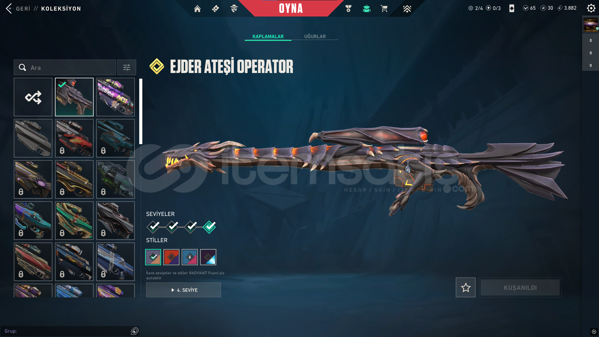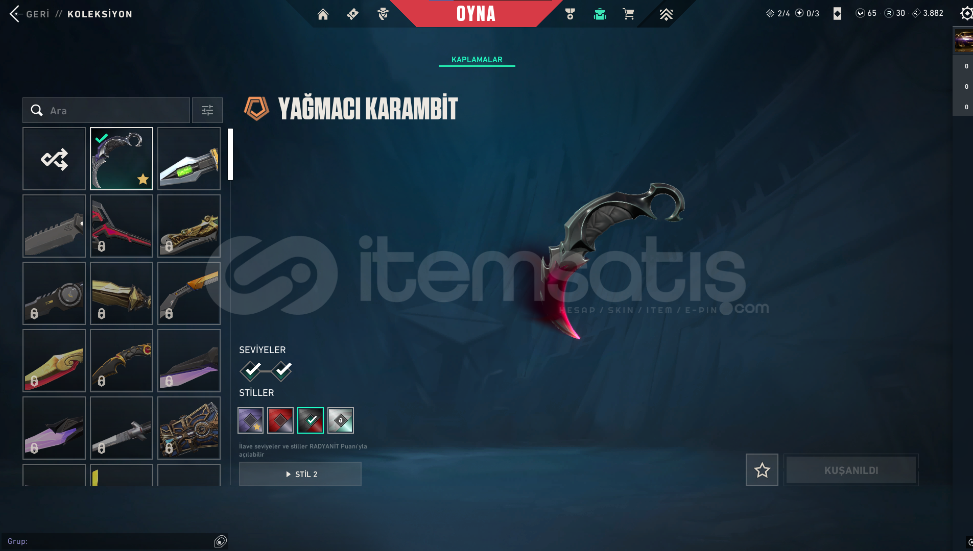 🔥🗡️ Yağmacı Karambit 🗡️🔥 🐲🔥 Ejder Ateşi Vandal 🔥🐲 👑✨ Asil Vandal ✨👑 👑💎 Asil Phantom 💎👑 ⚡💥 Flaş Phantom 💥⚡ 👑🔫 Asil Spectre 🔫👑 🐲🎯 Ejder Ateşi Operatör 🎯🐲 👑🔹 Asil Classic 🔹👑 🌸🔫 Kuronomi Sheriff...
