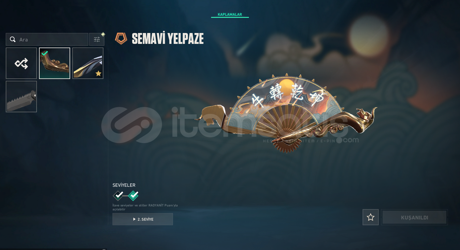 Hesabım tertemizdir, içerdiği değerli skinler;ONİ VANDALSEMAVİ YELPAZERGX 11Z PRO SPECTREBATTLE PASS SKİNLERİHESAP KENDİ MAİLİNİZİN ÜSTÜNE YAPILACAKTIR ALIM ESNASINDA DA ALIM SONRASINDA DA HER TÜRLÜ 7/24 DESTEK SAĞLANIR