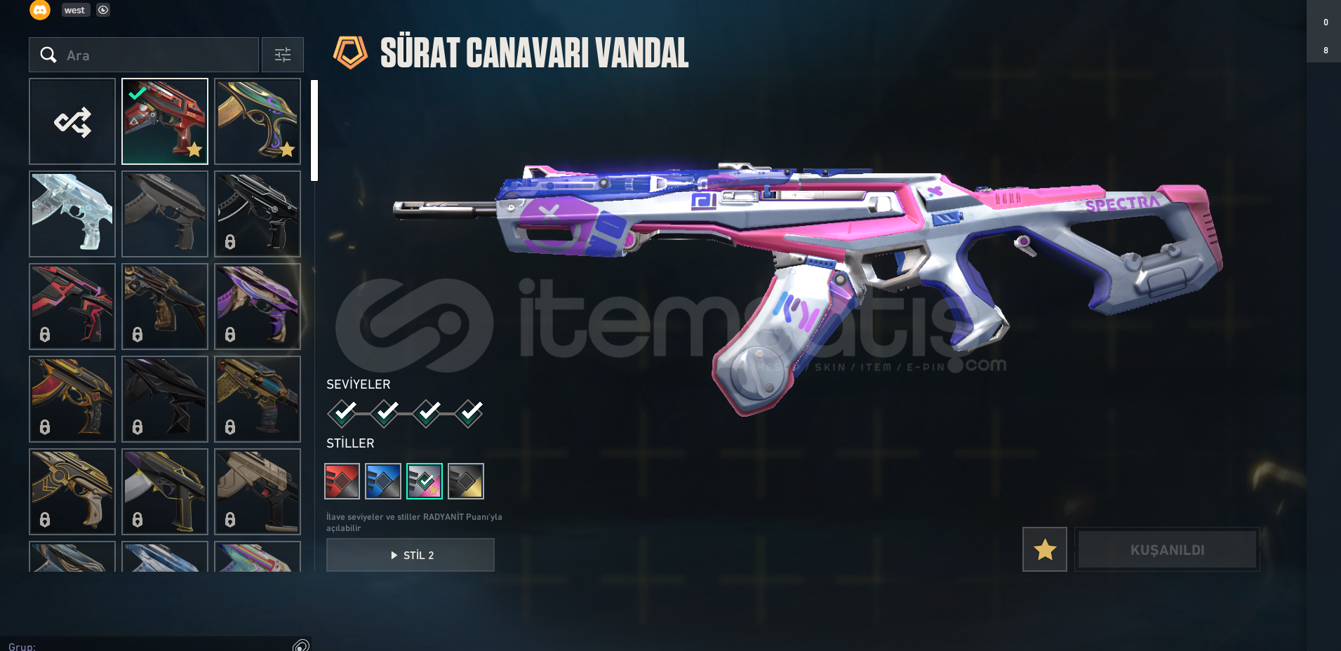HESAP 78 SEVİYEDİRHESAPTA OLAN SİLAH DESENLERİSÜRAAT CANAVARI VANDALKUM FIRTINASI VANDALKIŞ HARİKASI VANDALFATİH PHANTOMPOPSTAR CLASSİCTAKTİ-SERİ CLASSİCSEMADOKUYAN SHORTYENGİN MAVİLİK SHORTYİĞNE KABUK FRENZYSİLUET FRENZYTAKTİ-SERİ FRENZYFINDIKKIRAN GHOSTSEMADOKUYAN SHERRİFKUM FIRTINASI SHERRİFSEMADOKUYAN STINGERENGİN MAVİLİK STİNGERFINDIKKIRAN STİNGERKUYRUKLU YI...