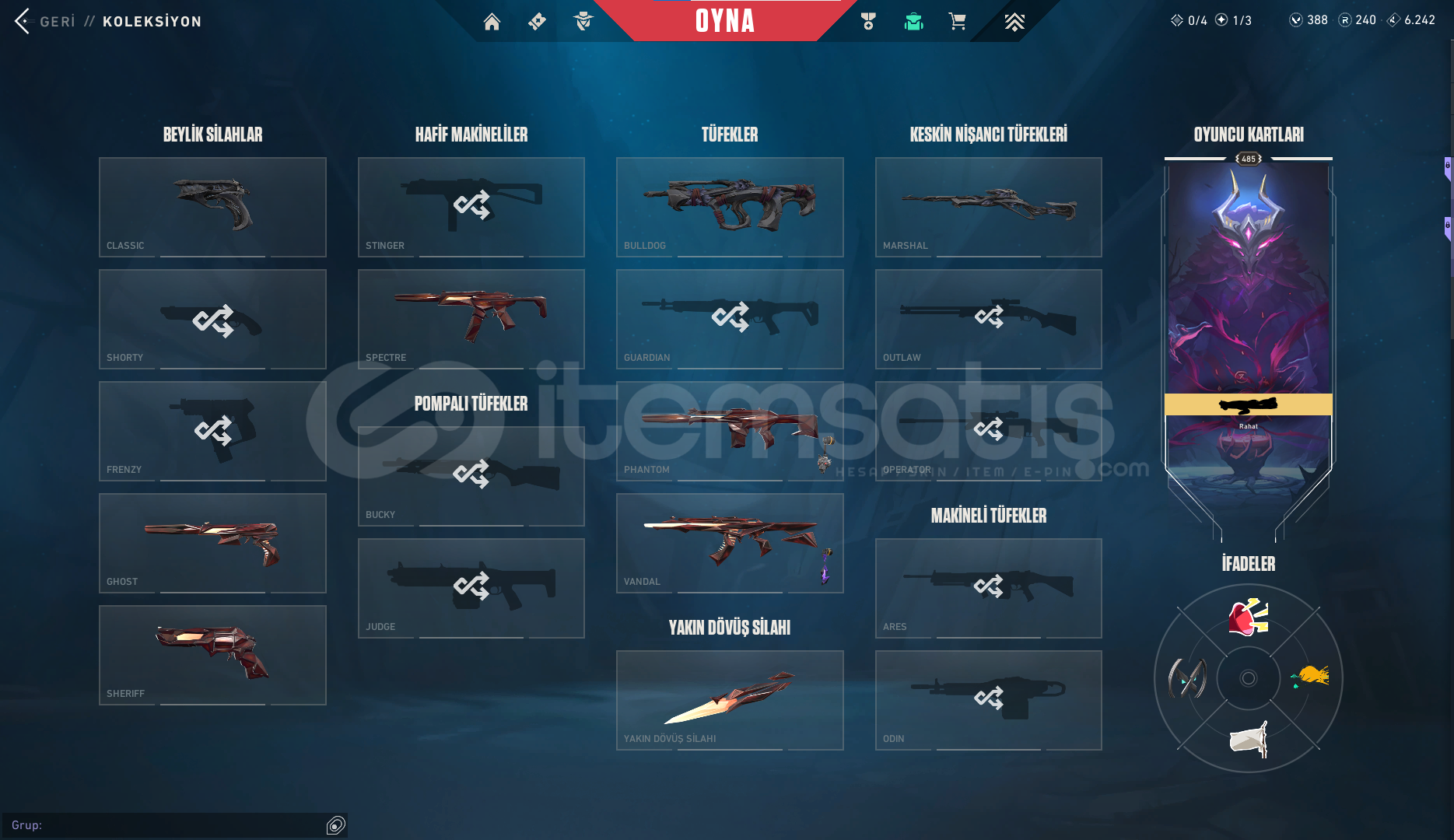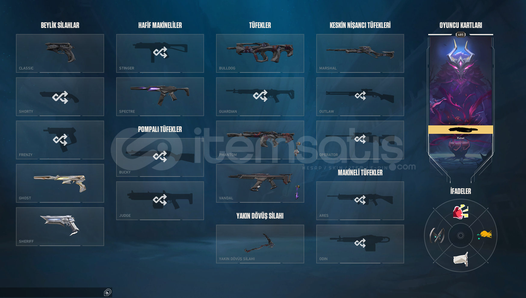 Hesapta 2 Tane Set Ve Bir Sürü Ekstra Skin Bulunmaktadır Fiyatının Oldukça Altına Veriyorum Aciliyetten Kaçmaz Hesap!İçindekiler : Zifiri Set ( Zifiri Tırpan , Zifiri Phantom , Zifiri Bulldog , Zifiri Marshall , Zifiri Classic ) Anomali 2.0 SET ( Anomali Ghost , Anomali Kelebek , Anomali Vandal ) EKSTRALARKuronami SherrifAnomali SherrifAnomali SpectreAnomali PhantomYağmacı Phantom Kuronami VandalFaz Koruyucu Vandal