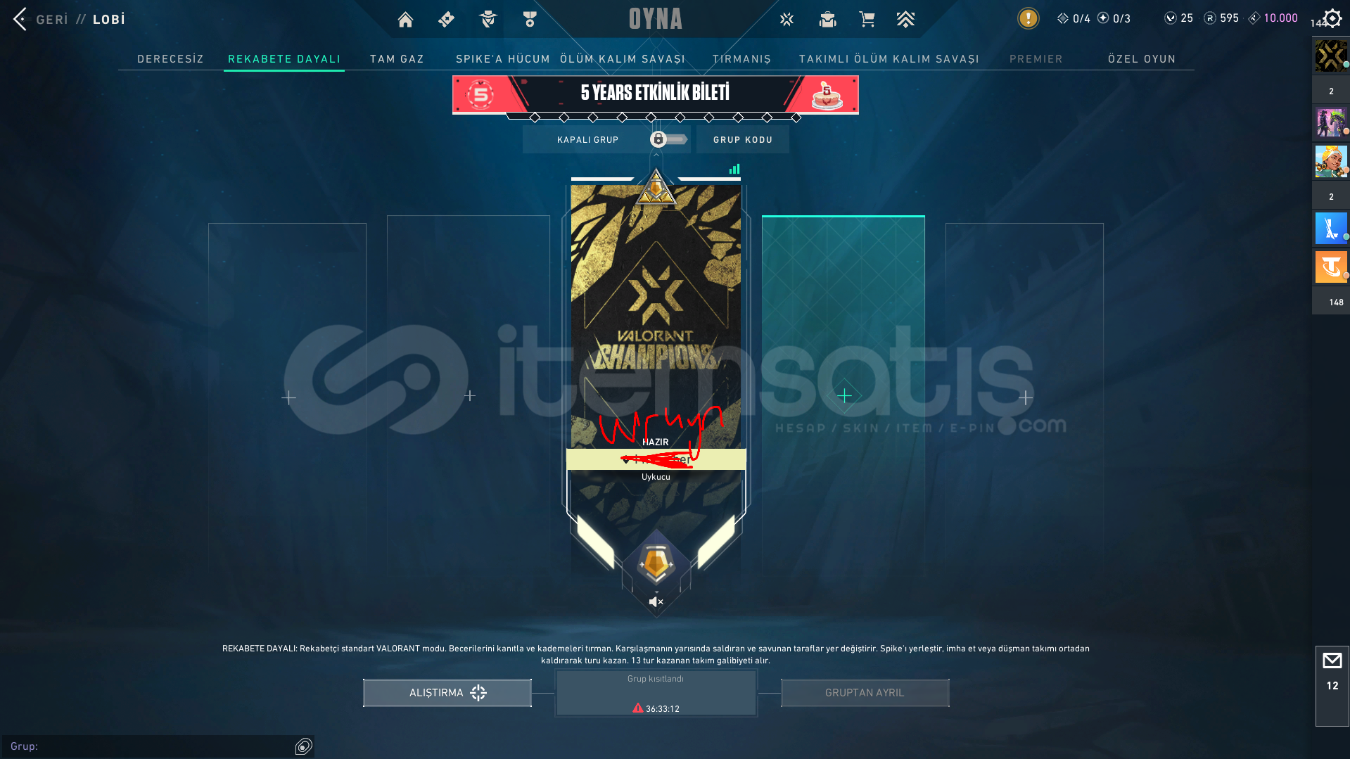 • Hesabın 36 Saat dereceli yasaklaması bulunmaktadır, 5 Haziran 09.00 tarihinden sonra dereceli oynanabilir.