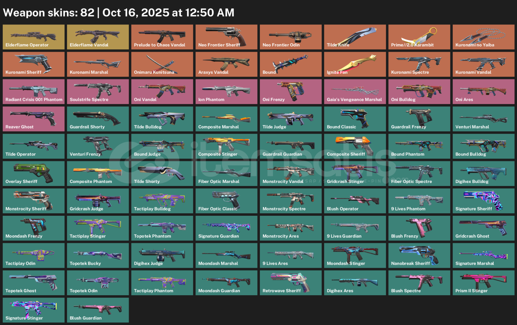 Hesaptaki Skinler; Ejder Vandal Ejder Operatör Kaosun Başlangıcı Vandal Seri Tetik Sheriff Seri Tetik Odin Kıvrım Bıçak Asil 2.0 Karambit Kuronami No Yaiba Bıçak Kuronami Sheriff Kuronami Marshall Oni Katana Yıldız Belası Vandal Alaz Yelpaze Kuronami Spectre Kuronami Vandal Radiant Krizi Phantom Oni Vandal İyon Phantom Oni Frenzy Gaia Marshall Oni Bulldog Oni Ares Yağmacı Ghost ve çok daha fazlası!