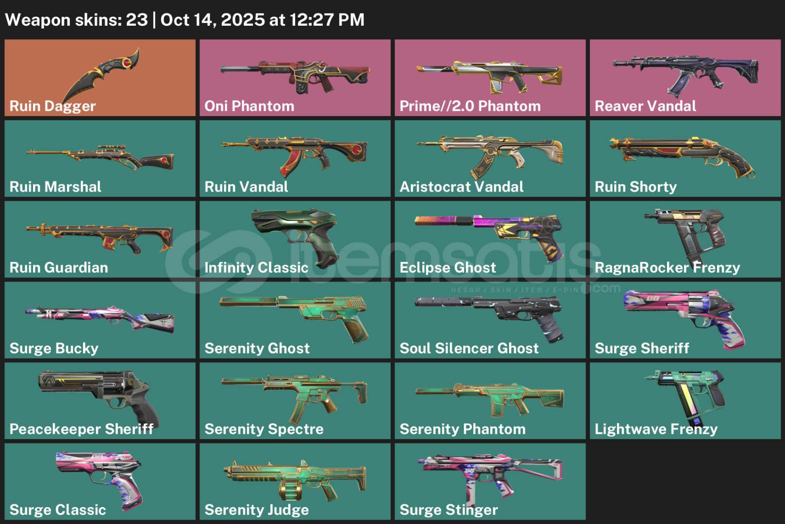 Hesaptaki Skinler; Yağmacı Vandal Oni Phantom Asil 2.0 Phantom Altın Afet hançer ve dahası!
