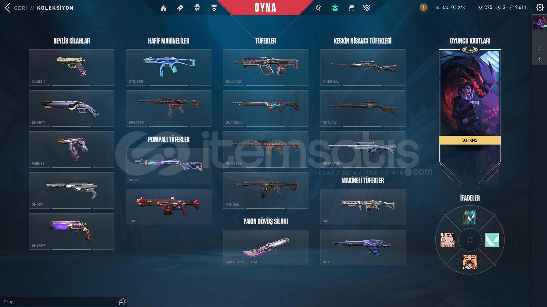💥 Valorant TR Hesabı Satılık –134 Level | Vandal Koleksiyonu Şahane! 🔹 Seviye: 134 🔹Sunucu: TR 🔹 🔹Battle Pass: 3 kez alınıp bitirilmiş 🔹🔹 E-posta: Değiştirilebilir 🔹 🔹Teslimat: Hesap 3 saat içinde garantili teslim 🚀 🎯 Skin Koleksiyonu: Classic: Asil Ghost: Ulupençe Sheriff: Seri Tetik Spectre: Özel Harekat Phantom: Özel Harekat, Spectr...