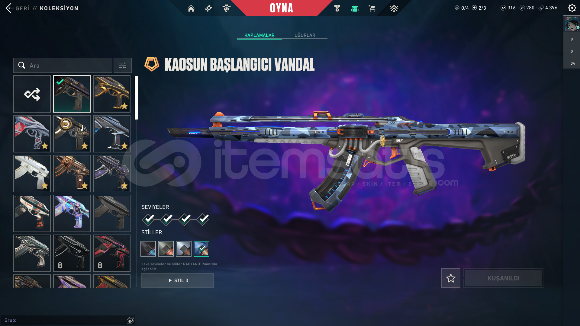 🎯 Hesaptaki Önemli SkinlerChronoVoid PhantomBoundPrelude to Chaos VandalKuronami VandalMagepunk SparkswitchComposite KnifeBubble Pop Light StickShellspire SwordAraxys OperatorNeptune VandalRecon PhantomForsaken OperatorReaver SheriffOrigin VandalMagepunk VandalSovereign MarshalReaver VandalForsaken VandalValiant Hero VandalMagepunk PhantomGaia's Vengeance Vandal📦 TeslimatSatın alım sonrası sistem OTOMATİK OLARAK Stoktan bilgileri teslim edecekti...