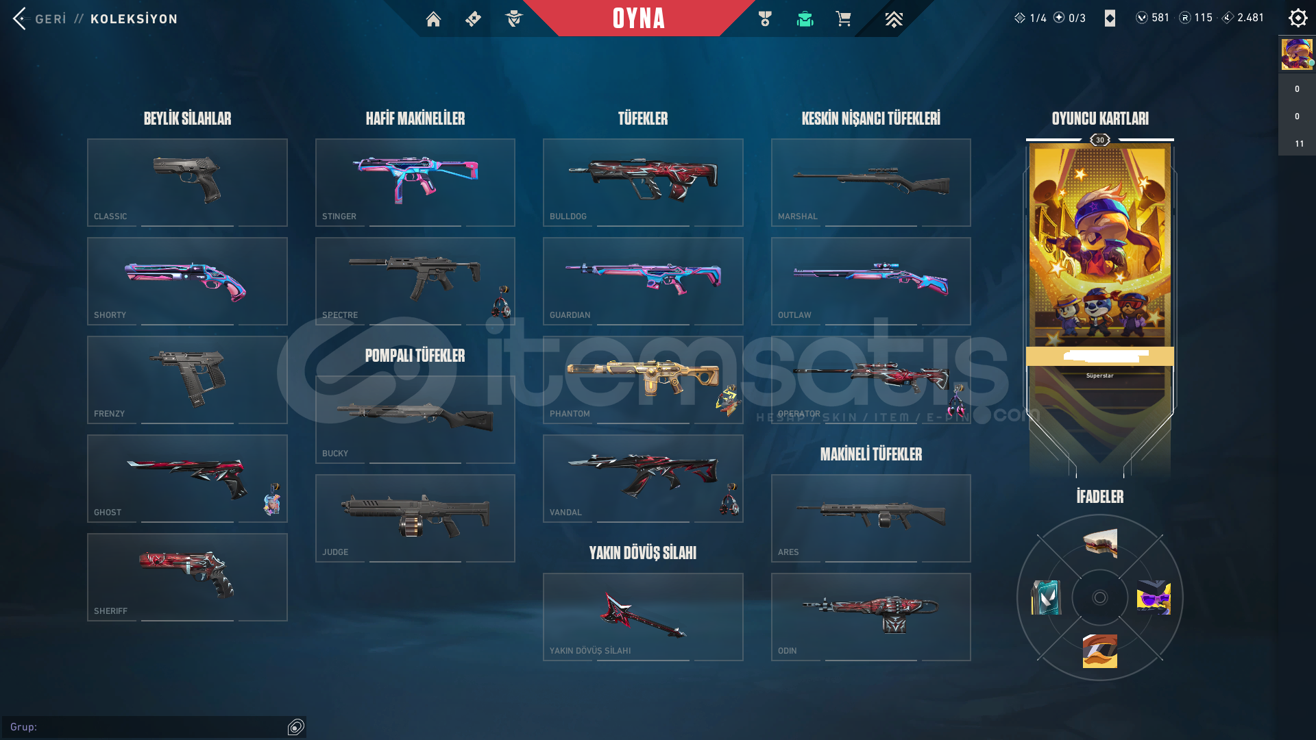 👋 HESAP SATIŞ PRIME GÜVENCESİYLE 👋-Hesap Durumu: [SİHİRPUNK PHANTOM]-+581 VP (VALORANT POİNTS)+10 BATTLE PASS SKİNS-⭐ Teslimat: Ödeme sonrası Maximum 12 Saat İçerisinde teslimat.⭐ Güvenlik: Mail Değişimi Yapılacaktır. (İlk Mail Yoktur)⭐ Satış öncesi ve sonrası aklınıza takılan sorular için mesaj atabili...