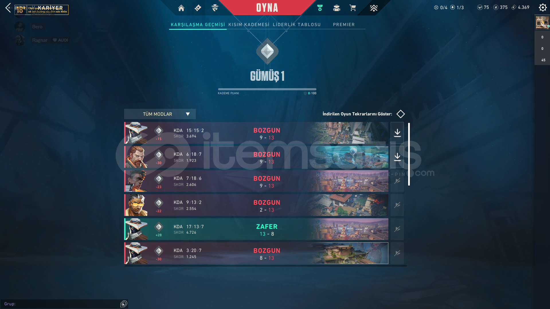 Ürün Hakkında Bilgi;İLANI SATIN ALDIĞINIZDA 7/24 OTOMATİK OLARAK TESLİM EDİLİR.RANK - SİLVER 1HESAP SEVİYESİ - 88SKİN SAYISI - 6VP SAYISI - 75+ 100.000 BAŞARILI İŞLEM İLE GÜVENLE ALIŞVERİŞ YAPABİLİRSİNİZ