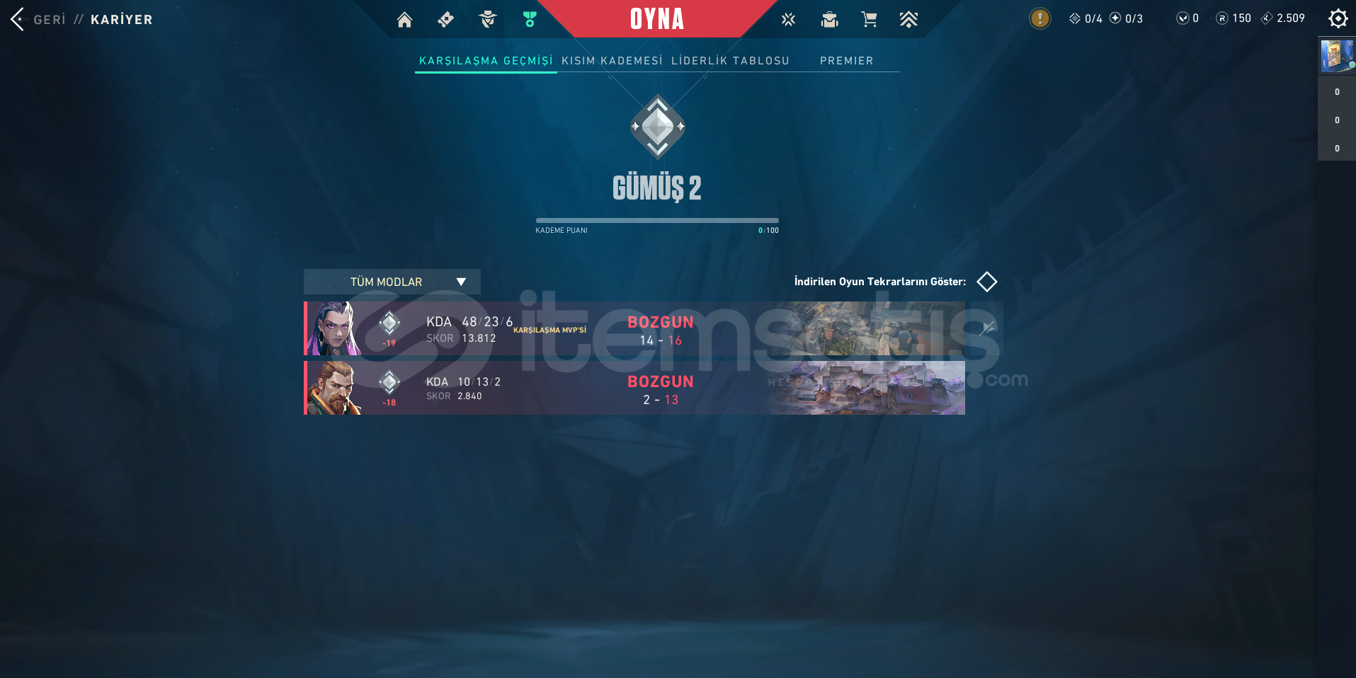 Hesabımızın rankı Silver 2 dir.