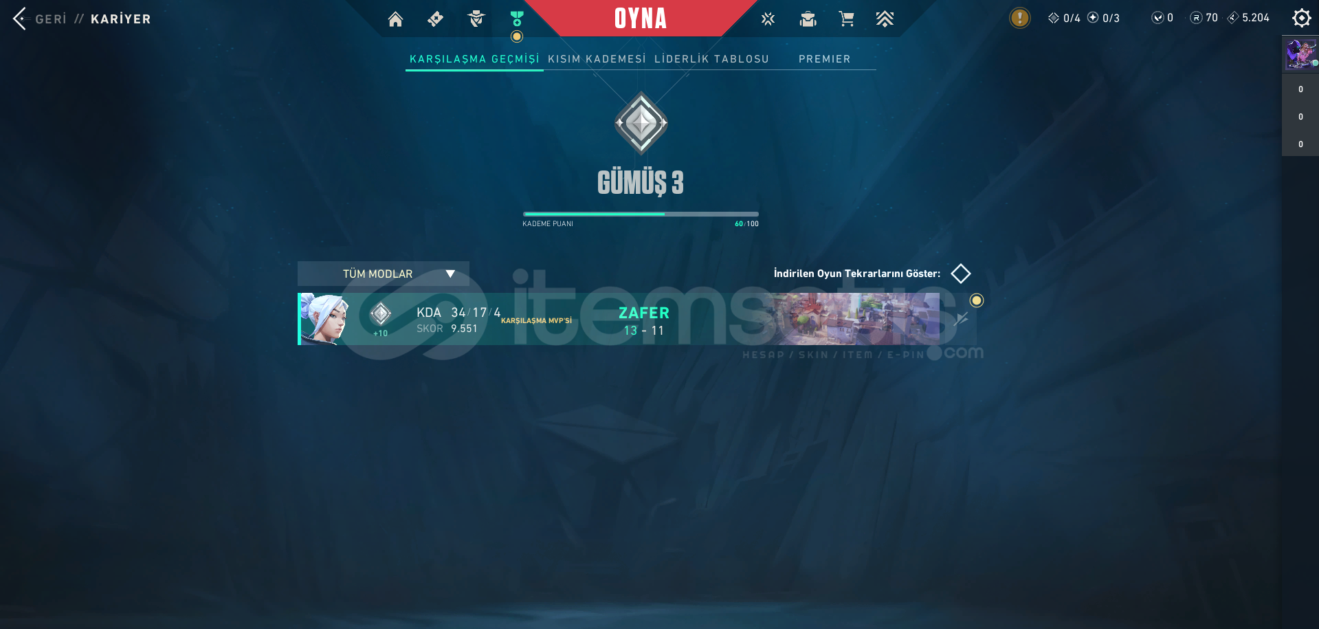 ⭐SİLVER 3 60KP MAİL DEĞİŞEN SINIRSIZ DESTEK⭐