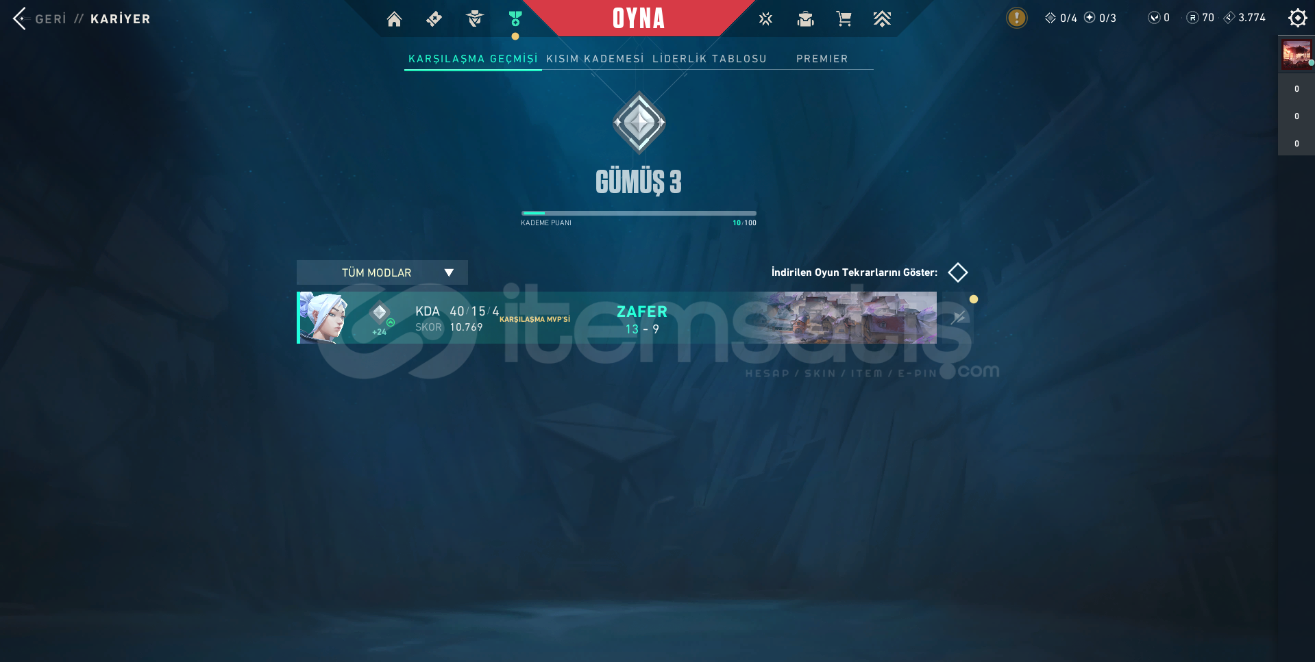 Hesabımızın rankı Silver 3 tür MMR oldukça yüksektir Silver 1 den 2 rank atlayarak Silver 3 olmuştur.