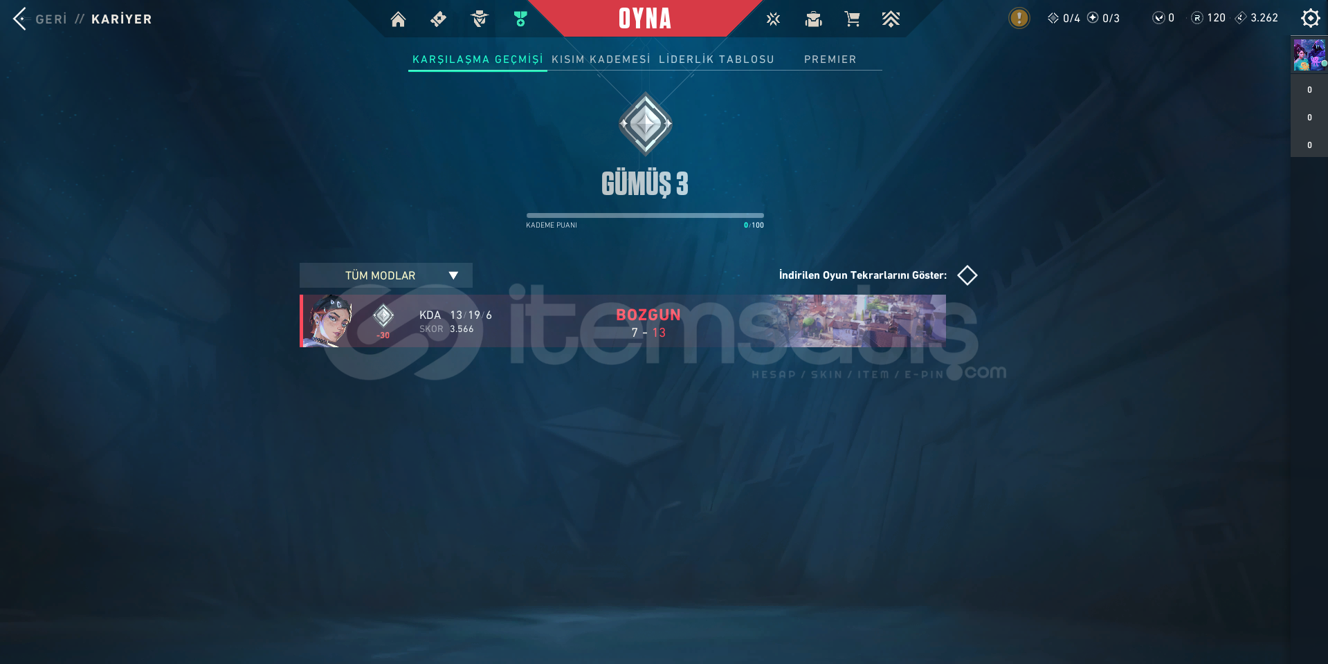 Hesabımızın rankı Silver 3 tür MMR oldukça düşüktür.