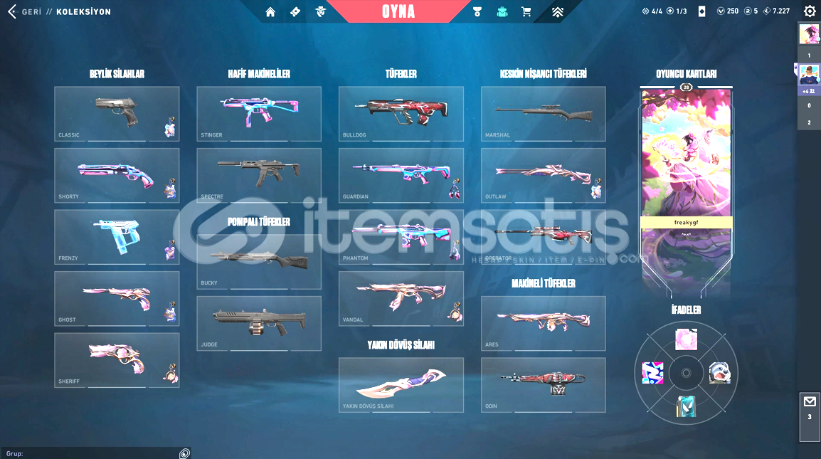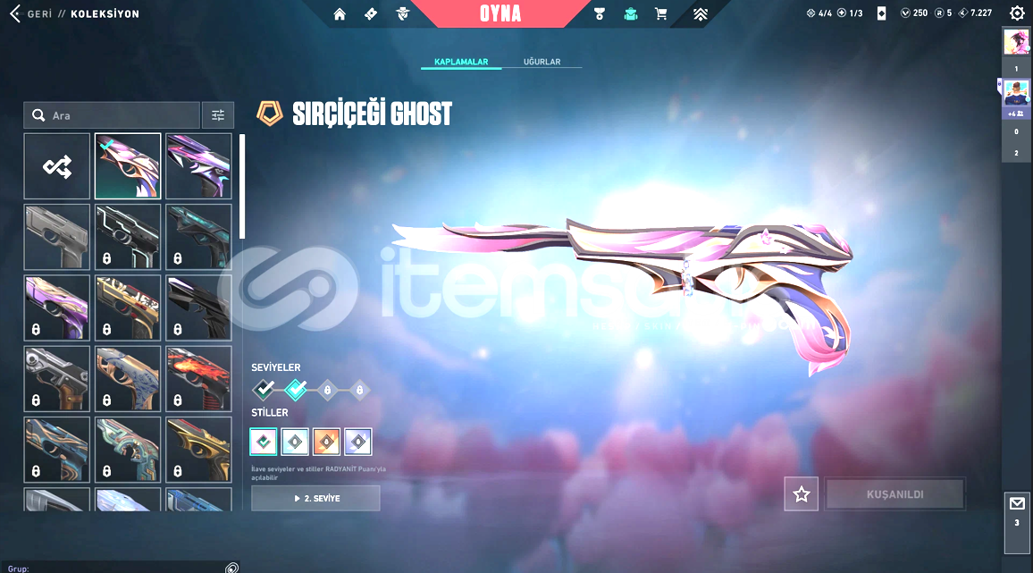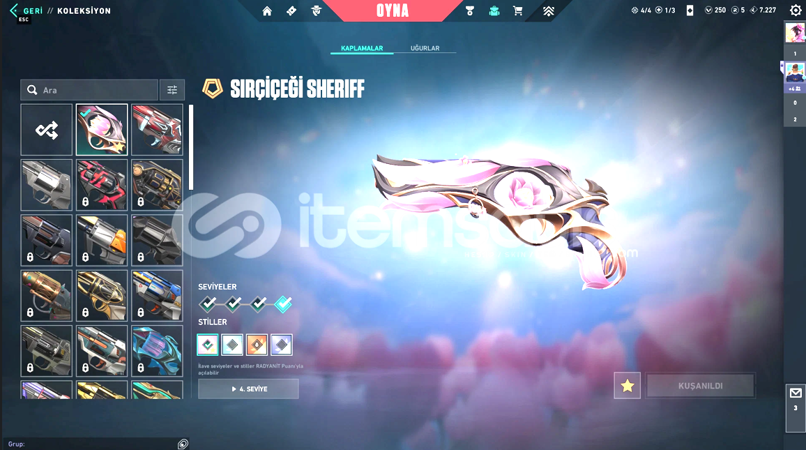 bıçaklar: ora by onetap , sır çiçeği yelpazeghost: sır Çiçeğisheriff: sır çiçeğivandal : zamanın ötesi , sir çiçeğioutlaw : sir çiçeğiares : sır Çiçeği