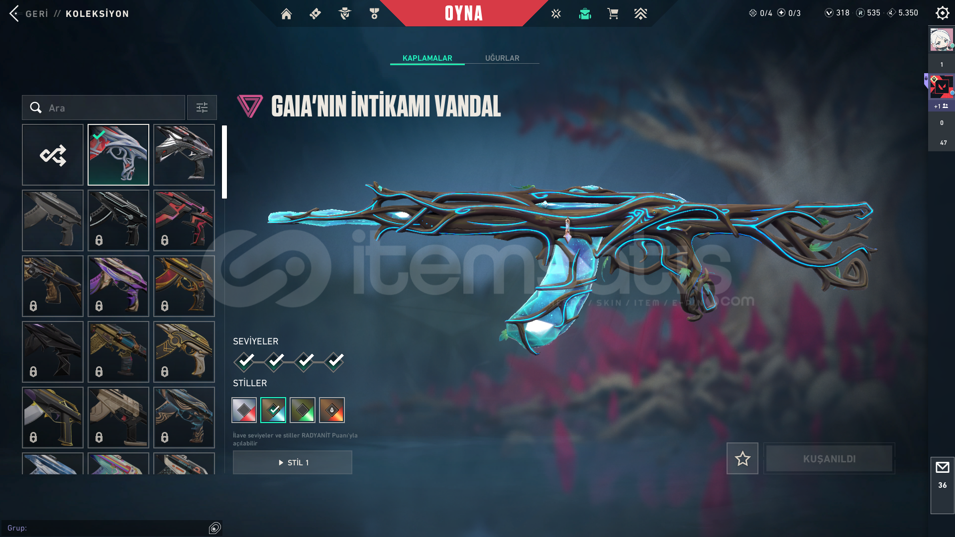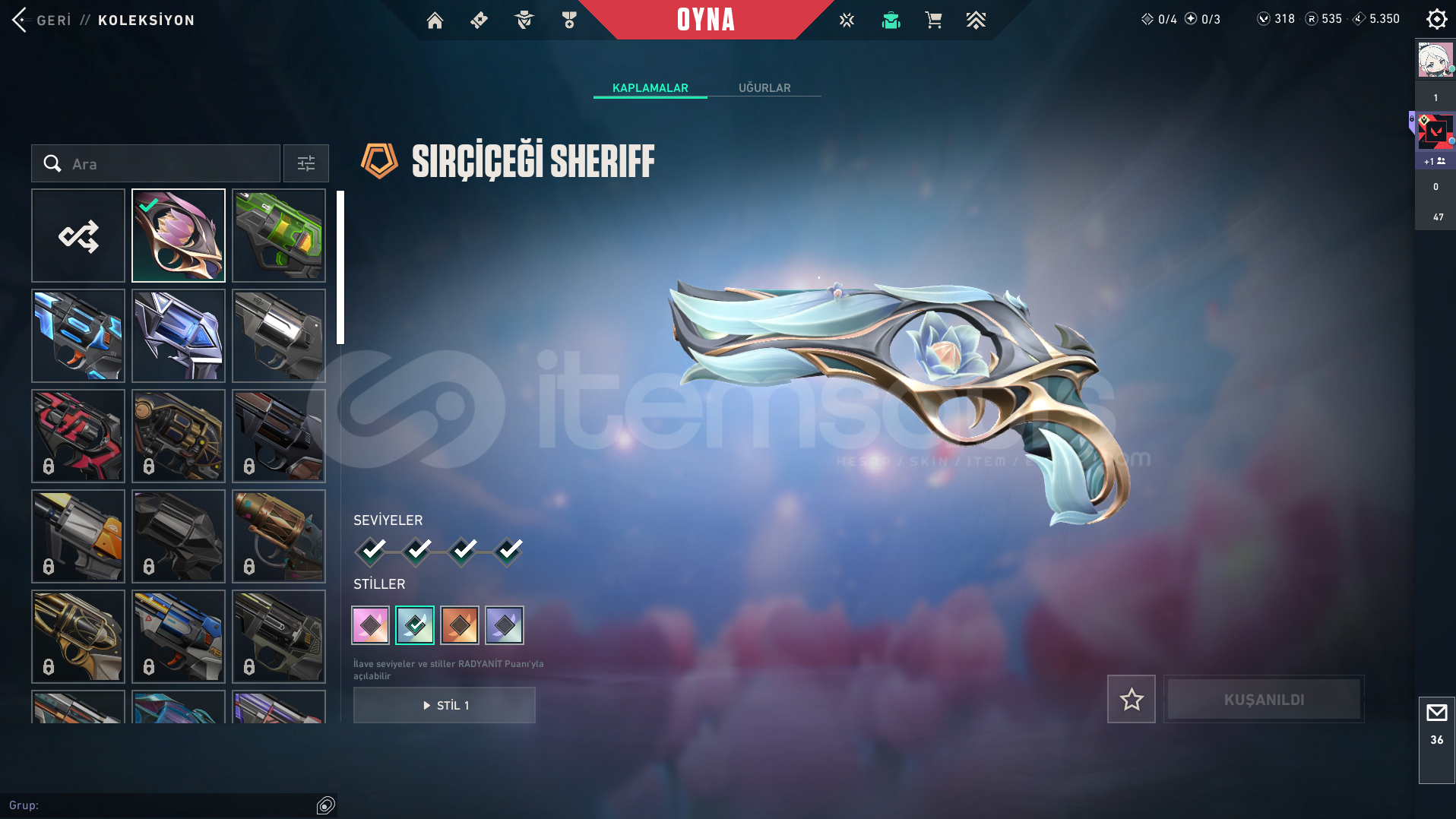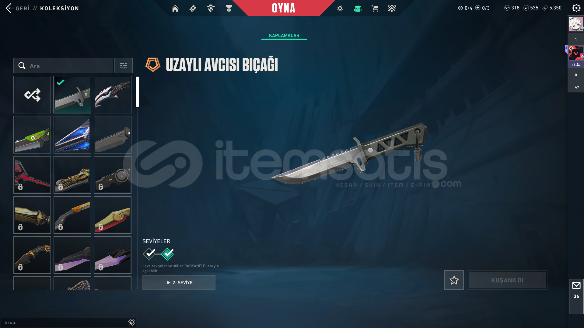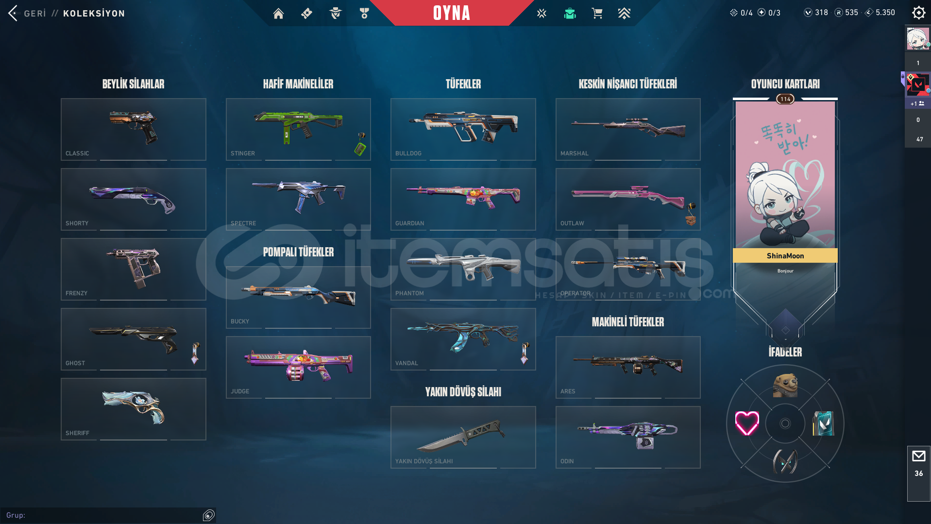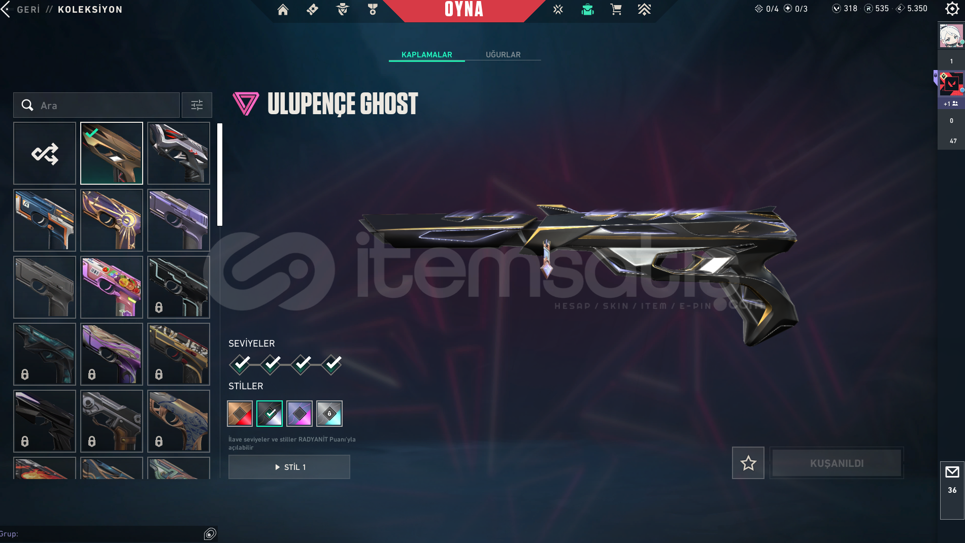 Hesapta 3 batlle pass açılmıştır tüm silahlarda skin vardır HESAPTAsırçiçeği şerif ulupençe ghostiyon phantomgainanın intikamı vandaluzaylı avcısı bıçağıEK OLARAK BATLLE PASS SKİNLERİ BULUNMAKTADIRhesapta 535 radyanit vardır yükseltmeye uygundur