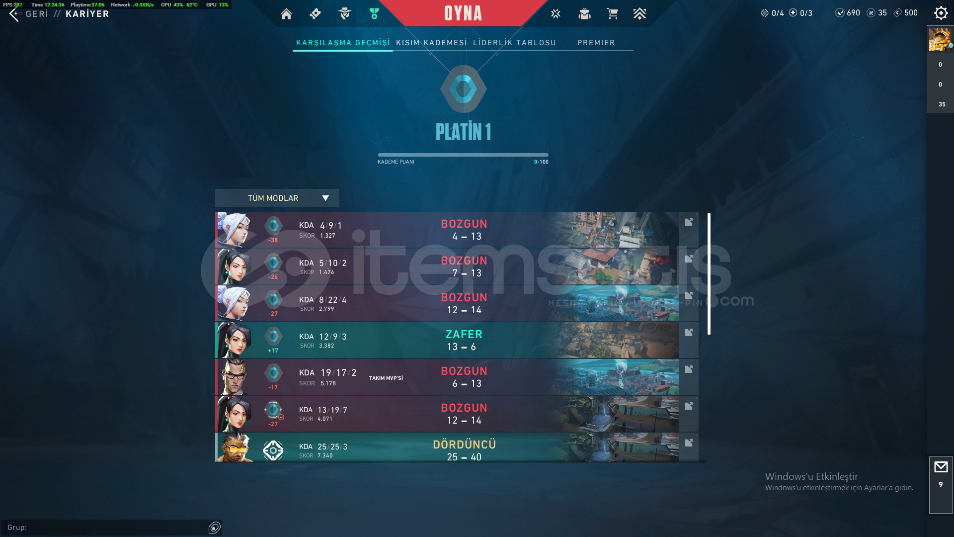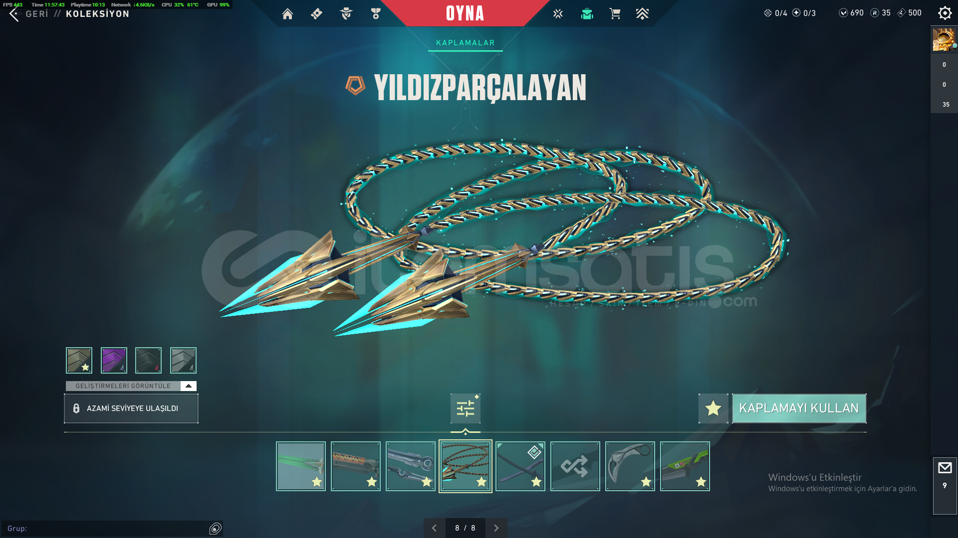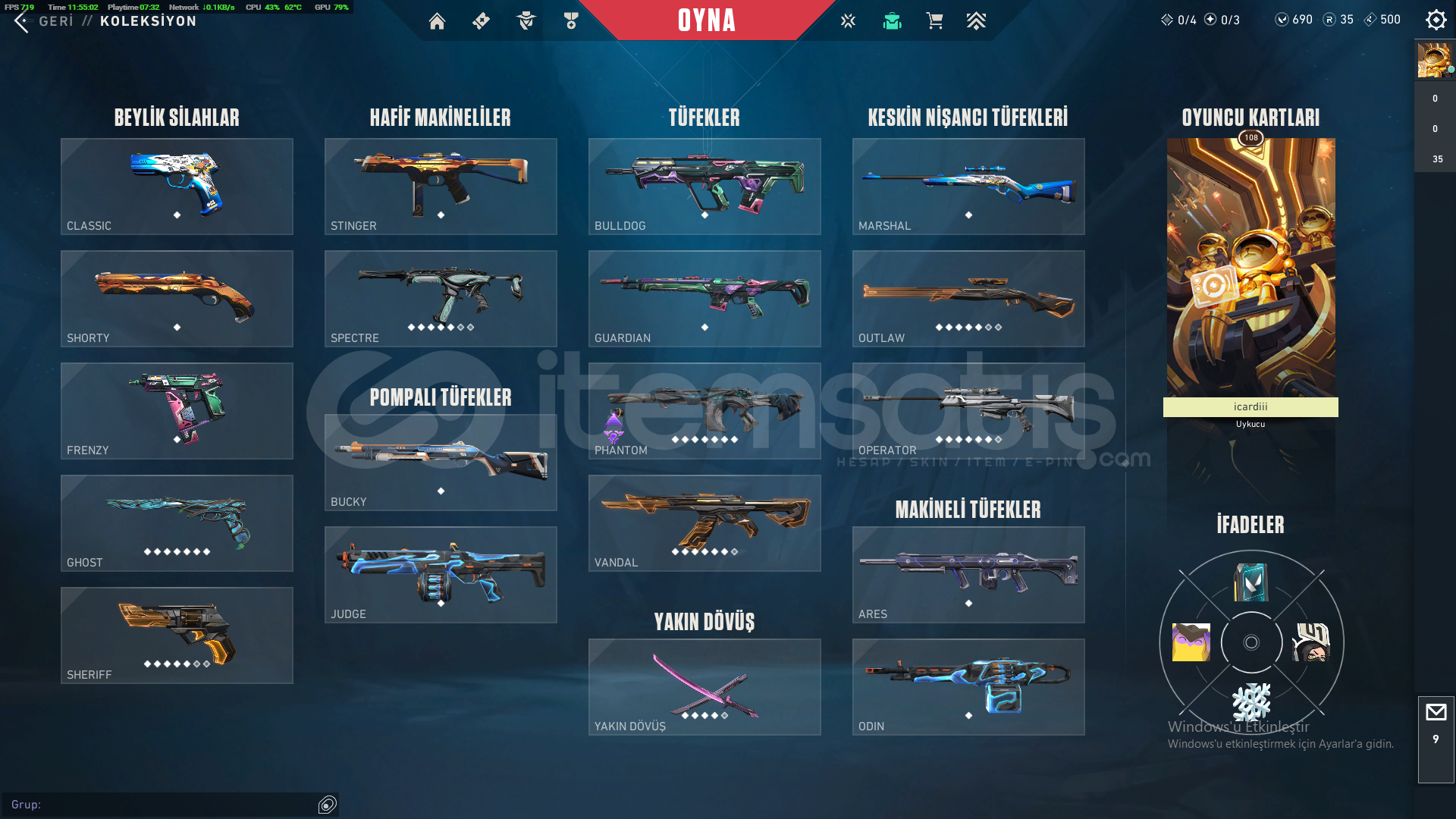 HESABIN E MAİLİ DEĞİŞTİRİLEBİLİRSEZON 2025 KISIM:1ÇARPIŞMA KISIM:3ÇARPIŞMA KISIM:2BAŞKALDIRI KISIM:3EX.O SETİ ALINMISTIRTOPLAM 8 BIÇAK DESENİ VARDIR (YILDIZPARÇALAYAN , İYON KARAMBİT , EX.O KILICI VE DÖRT TANE BATTLE PASS BIÇAĞI)TOPLAM 7 VANDAL DESENİ VARDIR (EX.O , ANOMALİ , CESUR YÜREK , HOLOMOKU VE İKİ TANE BATTLE PASS VANDALI)TOPLAM 5 PHANTOM D...