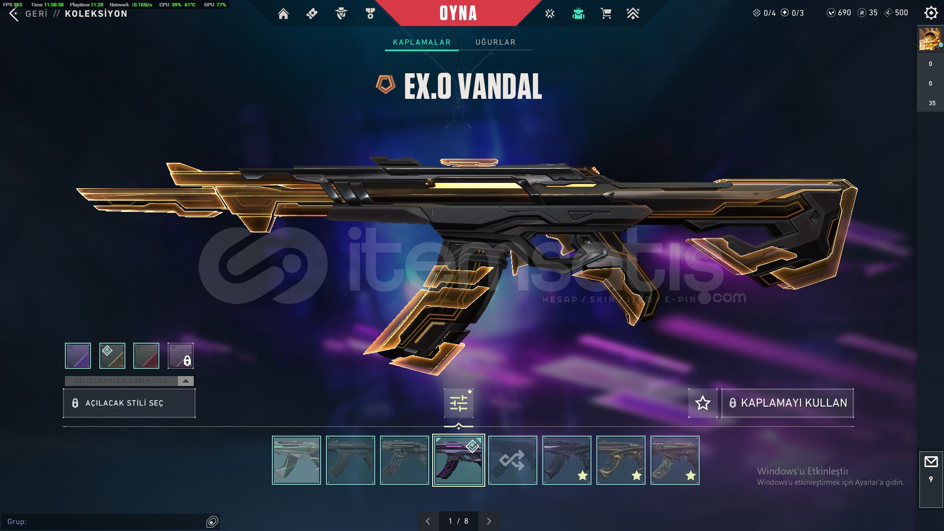 TOPLAM 7 VANDAL DESENİ VARDIR (EX.O , ANOMALİ , CESUR YÜREK , HOLOMOKU VE İKİ TANE BATTLE PASS VANDALI)