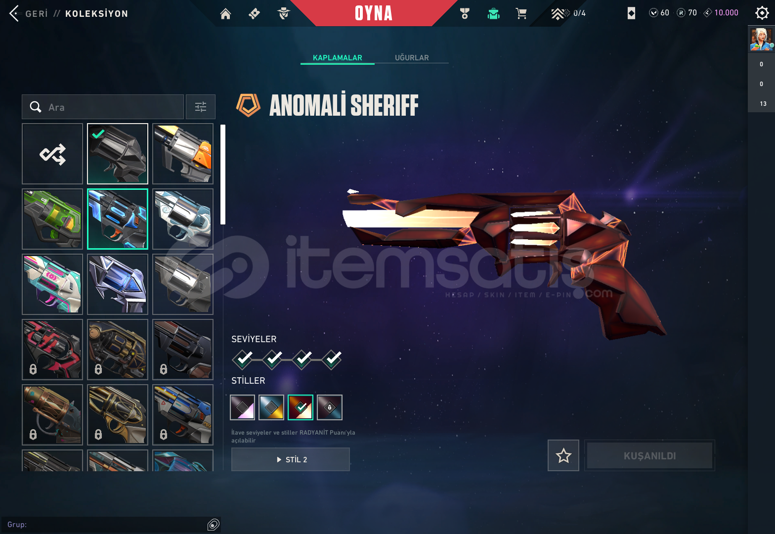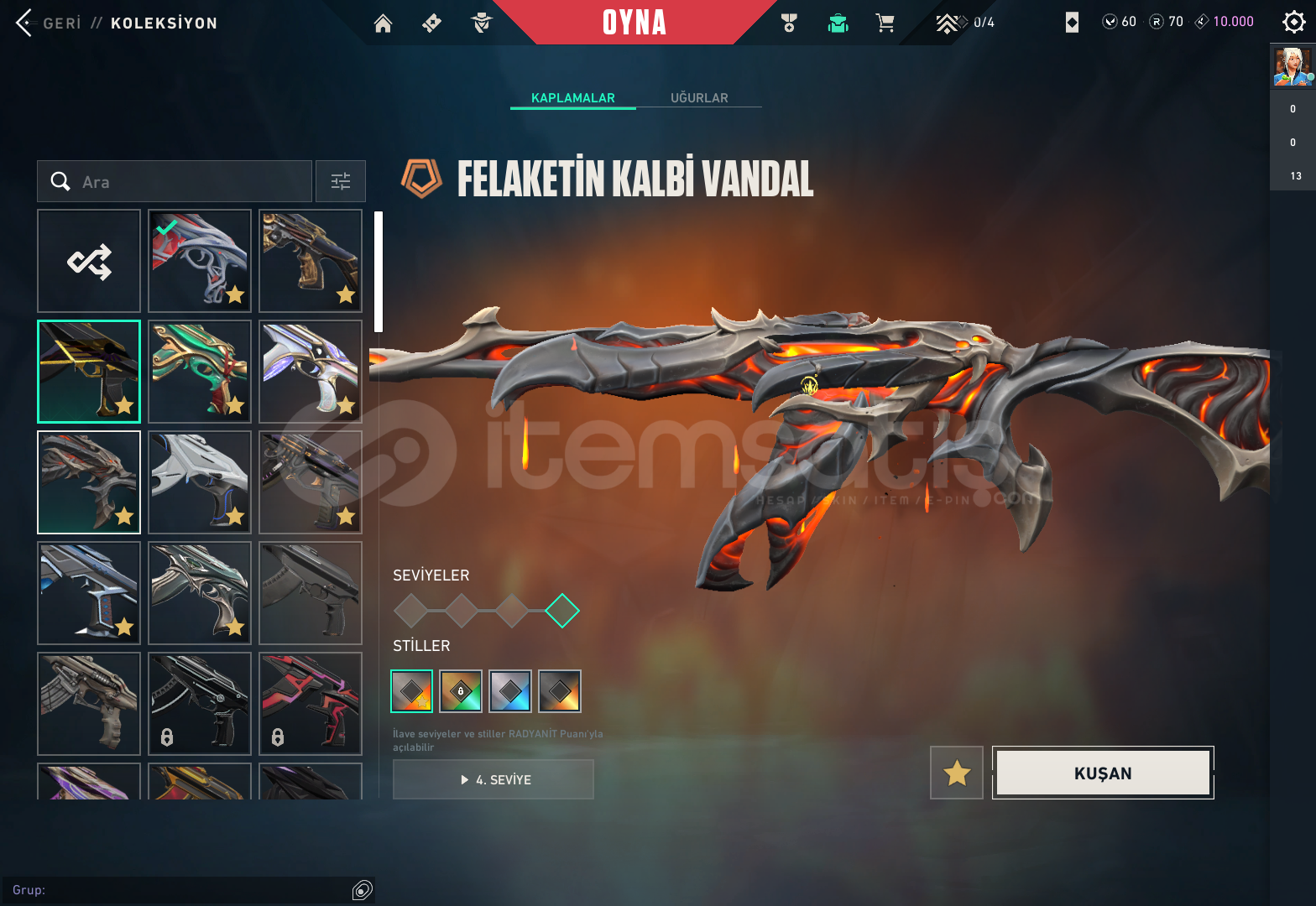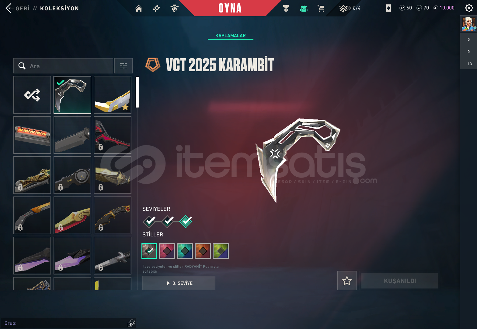 -Hesapta BulunanlarGaianın İntikamı Vandal Aemondır VandalChampıons 2023 Vandal Ejderin Buyruju VandalEvori Rüyakanatlar VandalFelaketin Kalbi Vandalİyon VandalKaosun Başlangıcı Vandal Kuronomi VandalYitik VandalÖzel Haraket PhantomVCT 2025 KARAMBİTASİL KARAMBİTANOMALİ SHERİFFCESUR YÜREK GHOSTYILDIZ BELASI OUTLAWBBL BUNDLE BULUNUYOR CLASSİC FELANHESAP GÜNCEL OLARAK YÜCELİKTİR FİYATI...