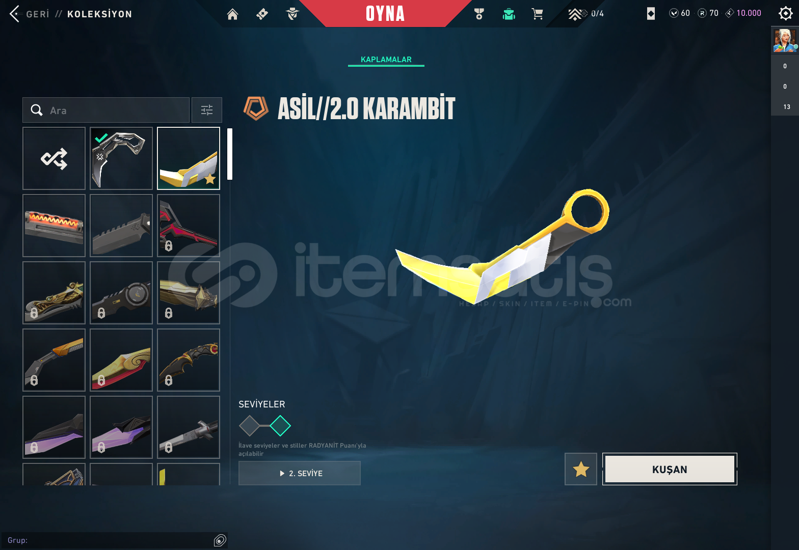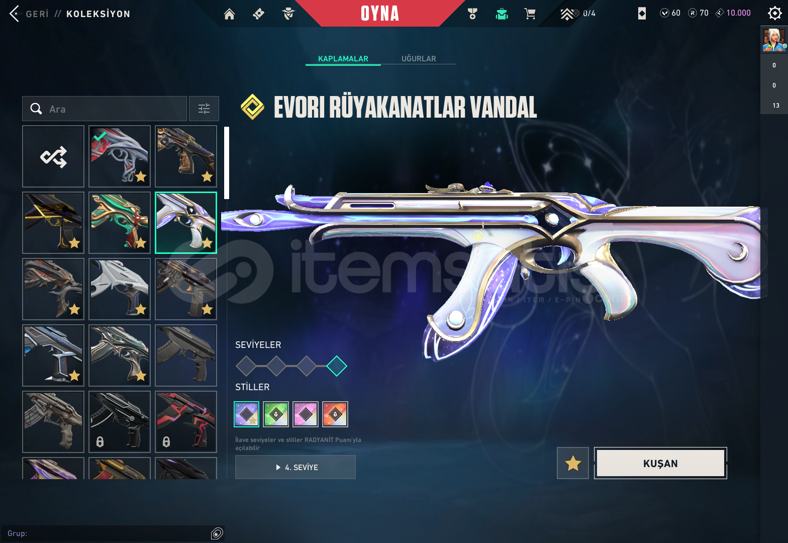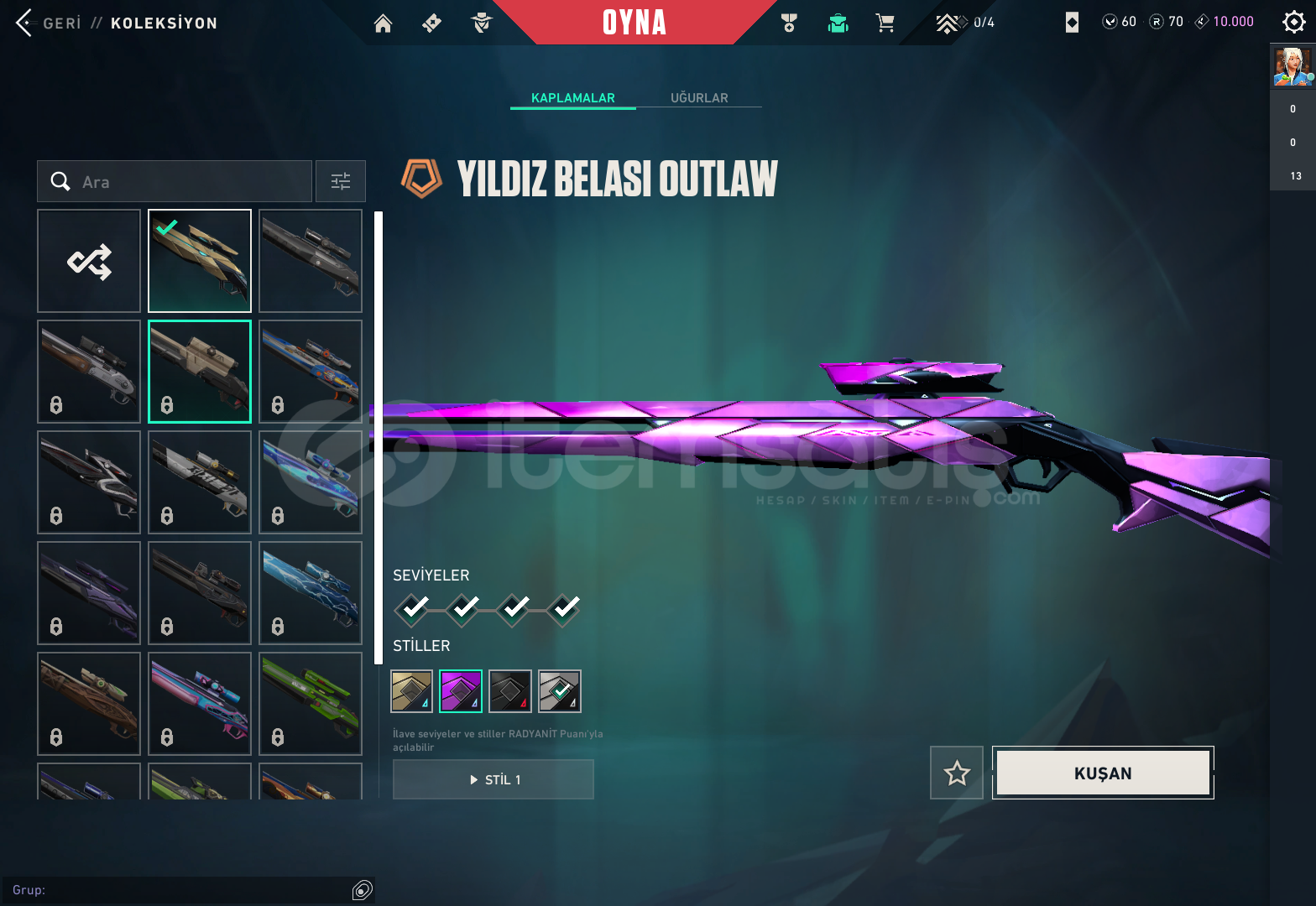 -Hesapta BulunanlarGaianın İntikamı Vandal Aemondır VandalChampıons 2023 Vandal Ejderin Buyruju VandalEvori Rüyakanatlar VandalFelaketin Kalbi Vandalİyon VandalKaosun Başlangıcı Vandal Kuronomi VandalYitik VandalÖzel Haraket PhantomVCT 2025 KARAMBİTASİL KARAMBİTANOMALİ SHERİFFCESUR YÜREK GHOSTYILDIZ BELASI OUTLAWBBL BUNDLE BULUNUYOR CLASSİC FELANHESAP GÜNCEL OLARAK YÜCELİKTİR FİYATI...