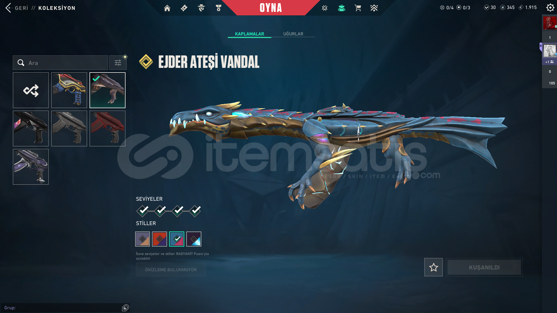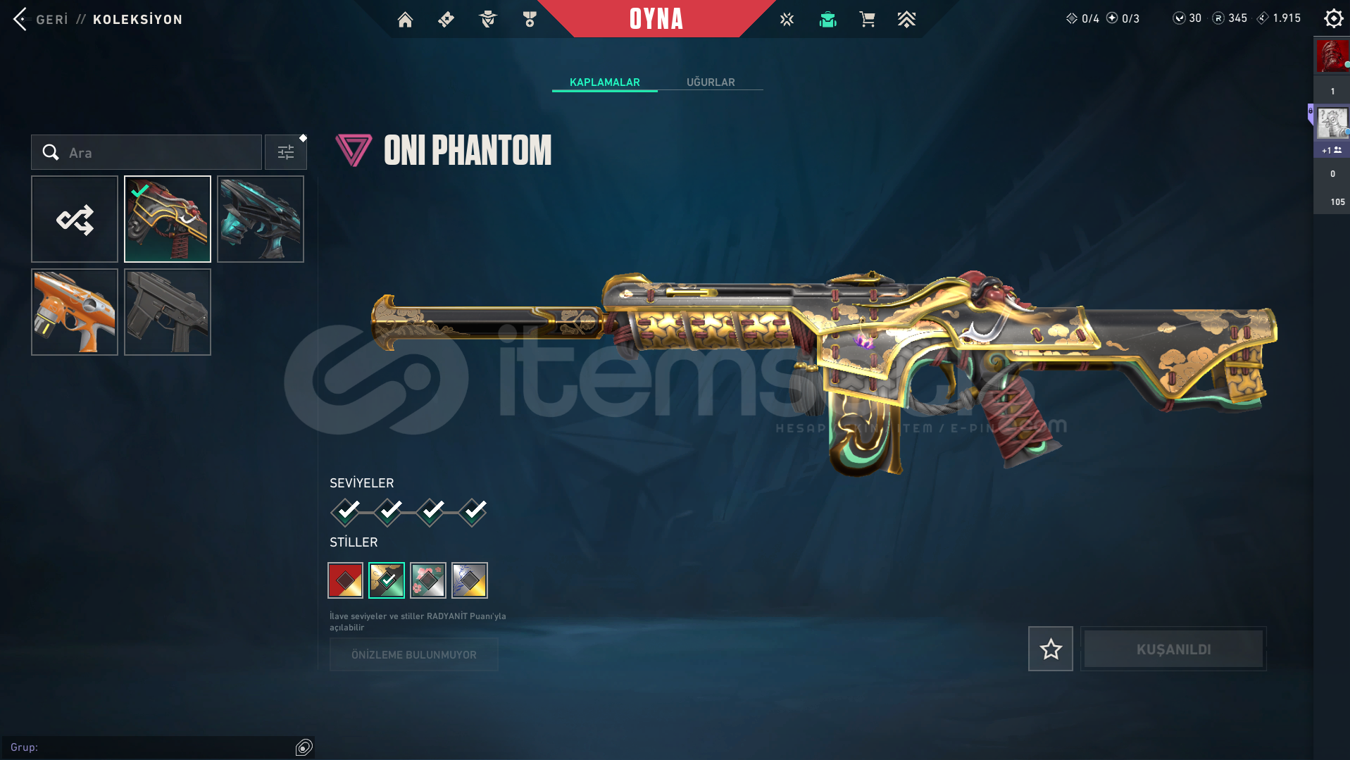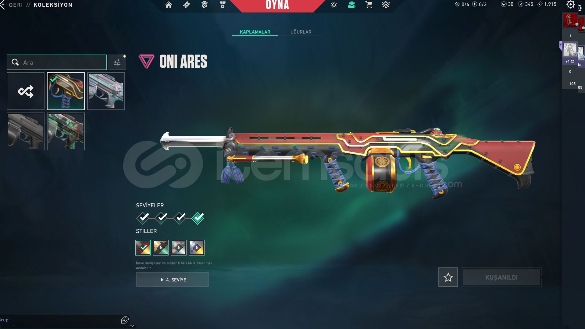 Hesapta Varolan Skinler:Vandal: Ejder Ateşi-Yağmacı-OniPhantom: Oni-AfetBulldogg: OniGhost: GaiaFrenzy: OniBıçaklar: Yağmacı Hançer-Özel Harekat Kelebek-Valorant Go Cilt 1 Kunai-Onimaru Kunitsuna-Hızlı ve Ölümcül KarambitDosta Gider Bir Hesaptır Değerinin Çeyrek Fiyatı Bile Bu Değildir...Gerçek Alıcılar Yazsın Pazarlık Elbet Yapılır.Alana Şimdiden Hay...