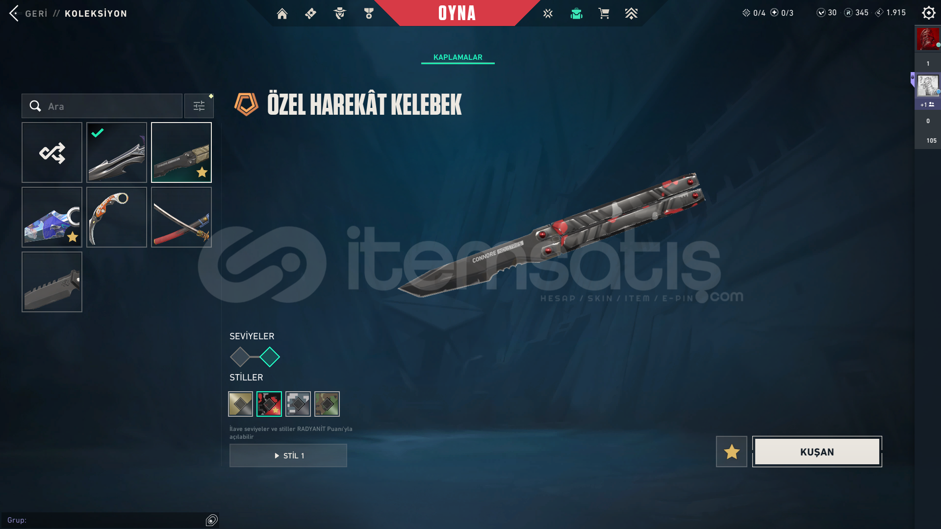 Bıçaklar: Yağmacı Hançer-Özel Harekat Kelebek-Valorant Go Cilt 1 Kunai-Onimaru Kunitsuna-Hızlı ve Ölümcül Karambit