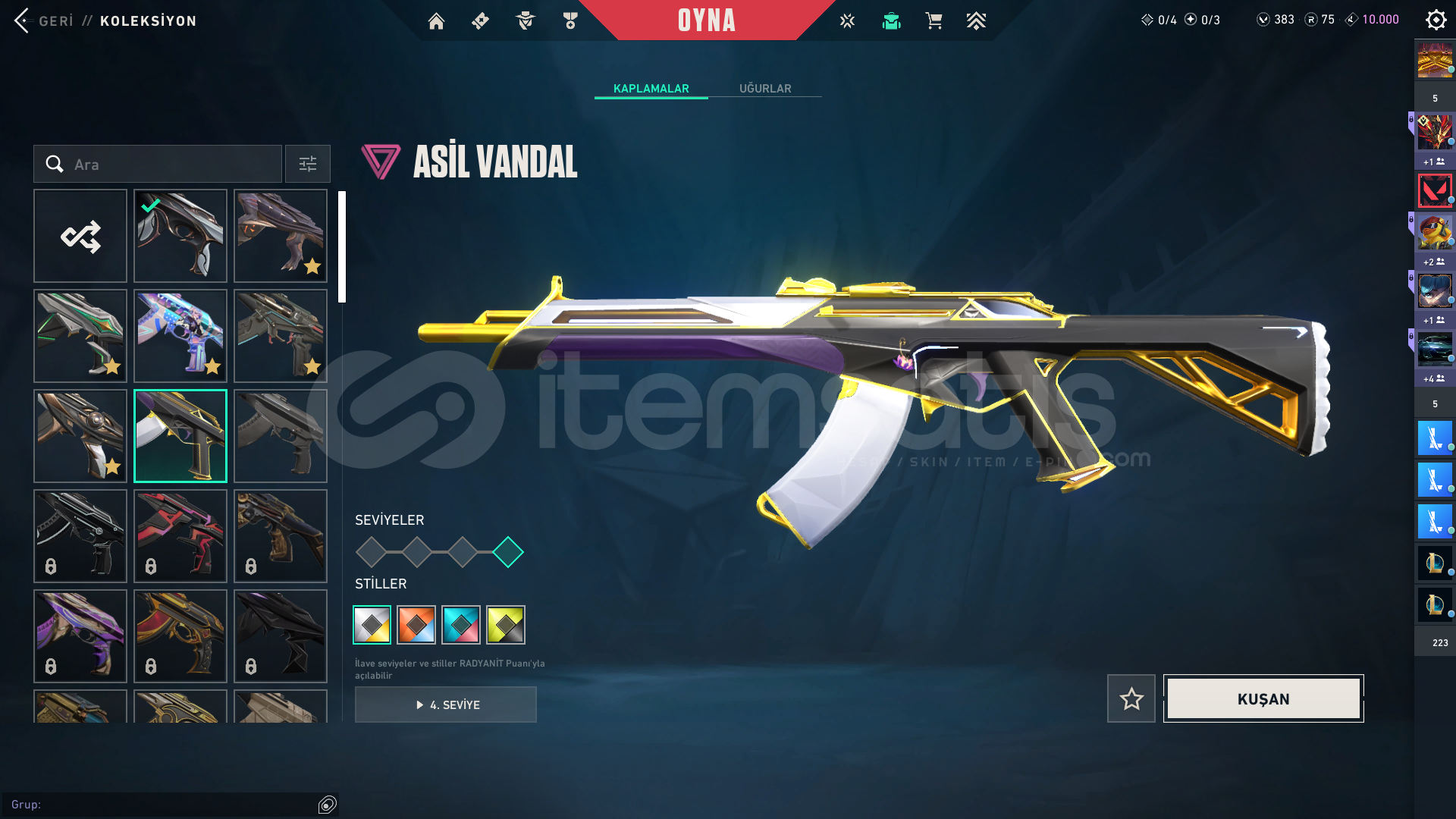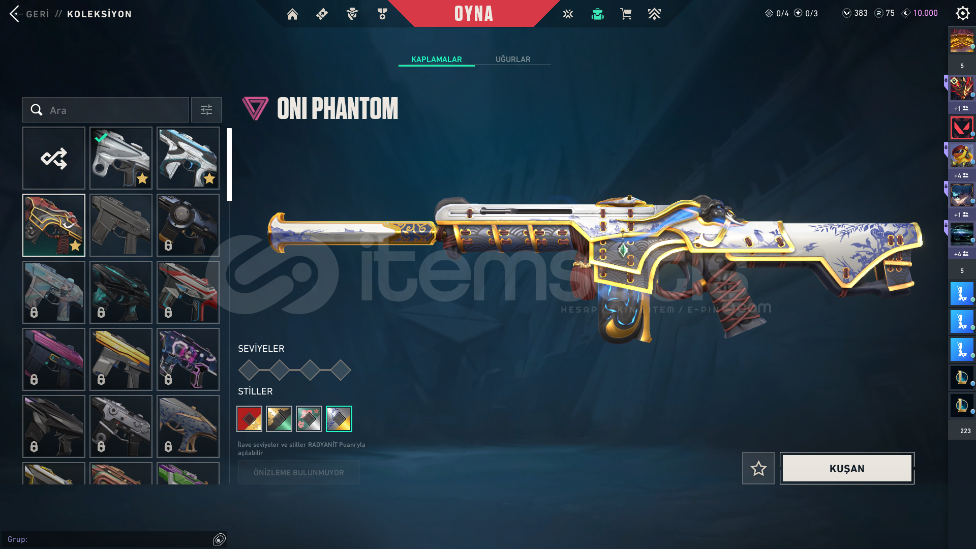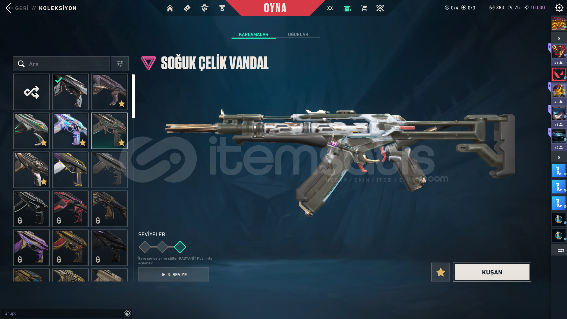 Nakit ihtiyacımdan dolayı satmak durumundayım.hesapta fiyatına göre yeterli skinler var.VANDAL=ejder vandal , asil vandal , soğuk çelik vandal , zamanın ötesi vandal , divergence vandalPHANTOM=oni phantom , iyon phantomBIÇAK=kronomi kunai ve 2 adet battle passiyon sherif , fatih ghost , yağmacı operatör , yağmacı spectrehesapta bu skinler bulunmaktadır hesap aktif olarak elmas 3 ve Yüce elo aralığ&...