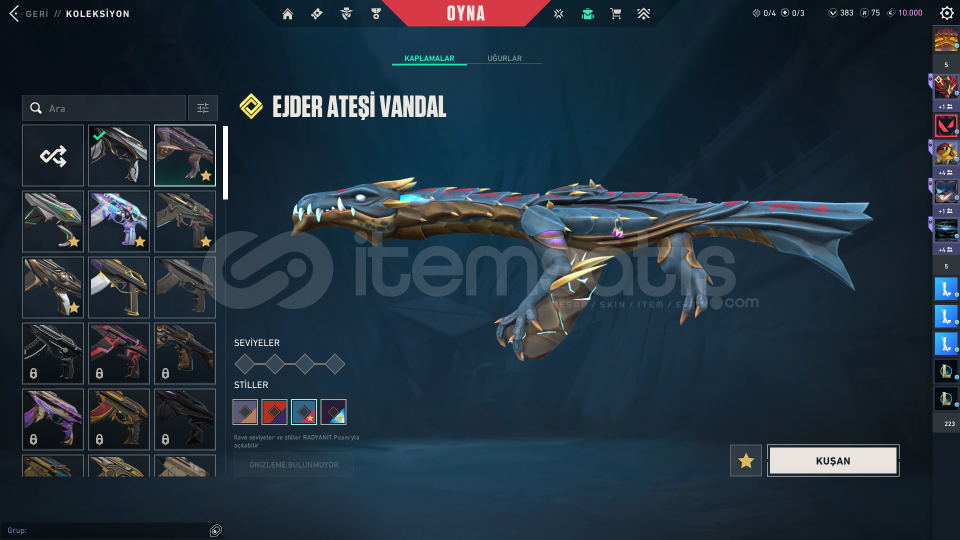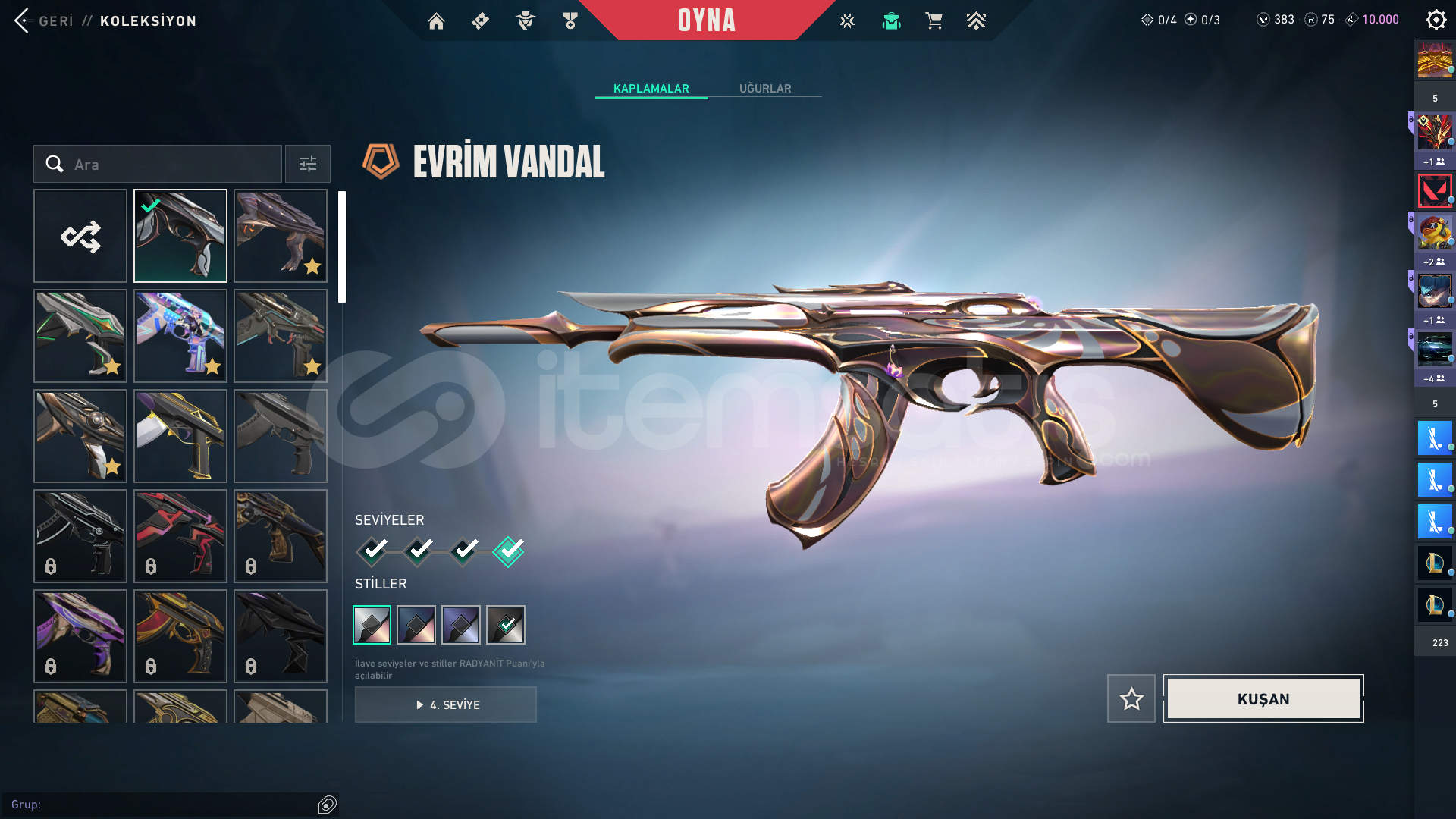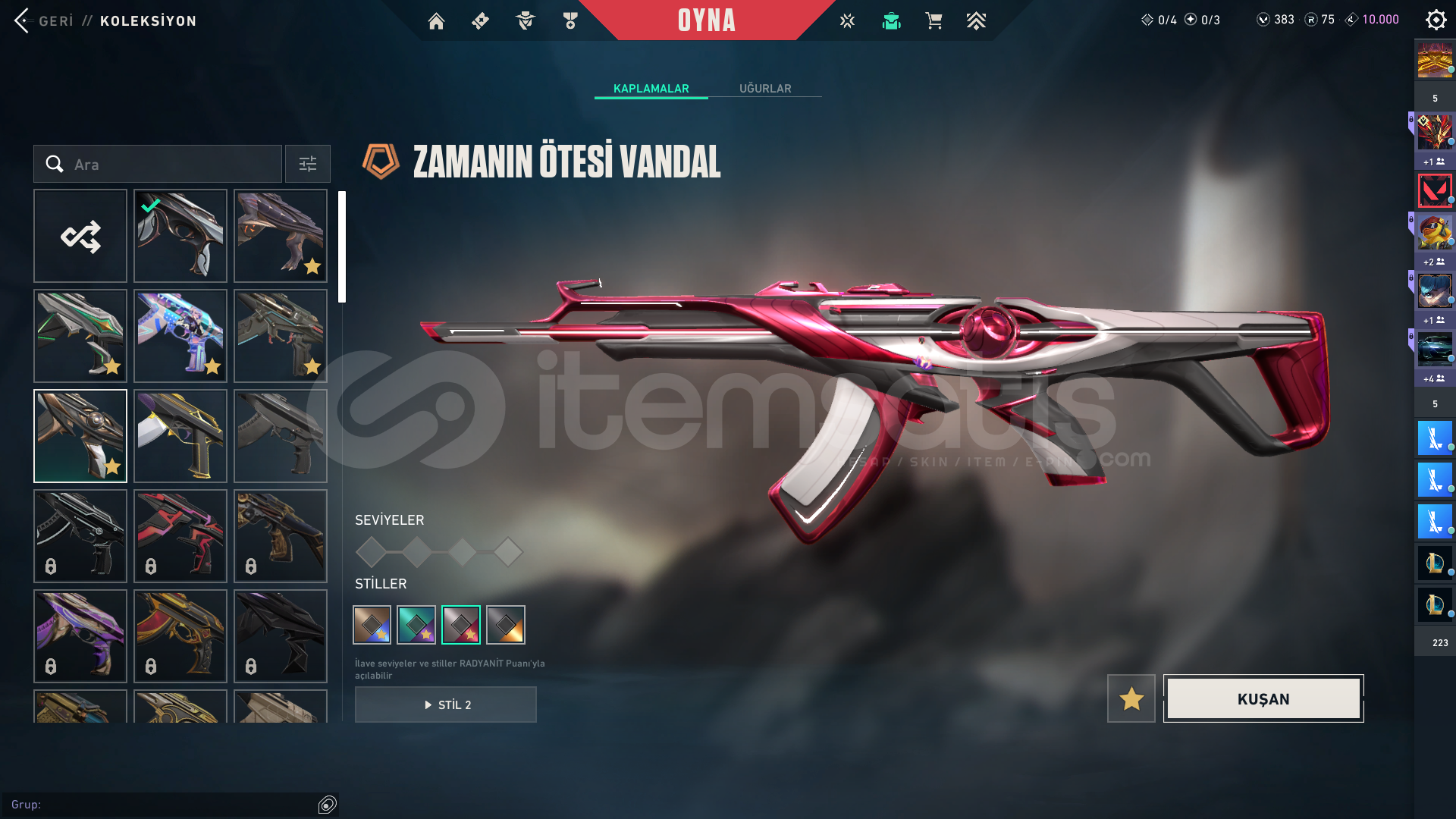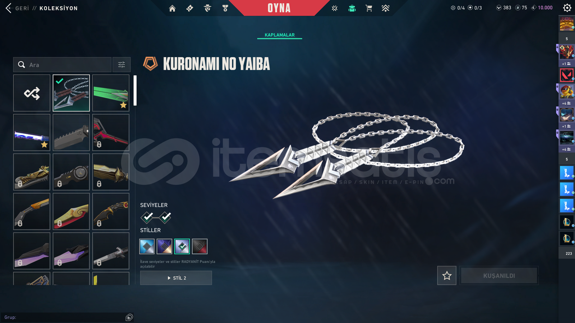 Nakit ihtiyacımdan dolayı satmak durumundayım.hesapta fiyatına göre yeterli skinler var.VANDAL=ejder vandal , asil vandal , soğuk çelik vandal , zamanın ötesi vandal , divergence vandalPHANTOM=oni phantom , iyon phantomBIÇAK=kronomi kunai ve 2 adet battle passiyon sherif , fatih ghost , yağmacı operatör , yağmacı spectrehesapta bu skinler bulunmaktadır hesap aktif olarak elmas 3 ve Yüce elo aralığ&...