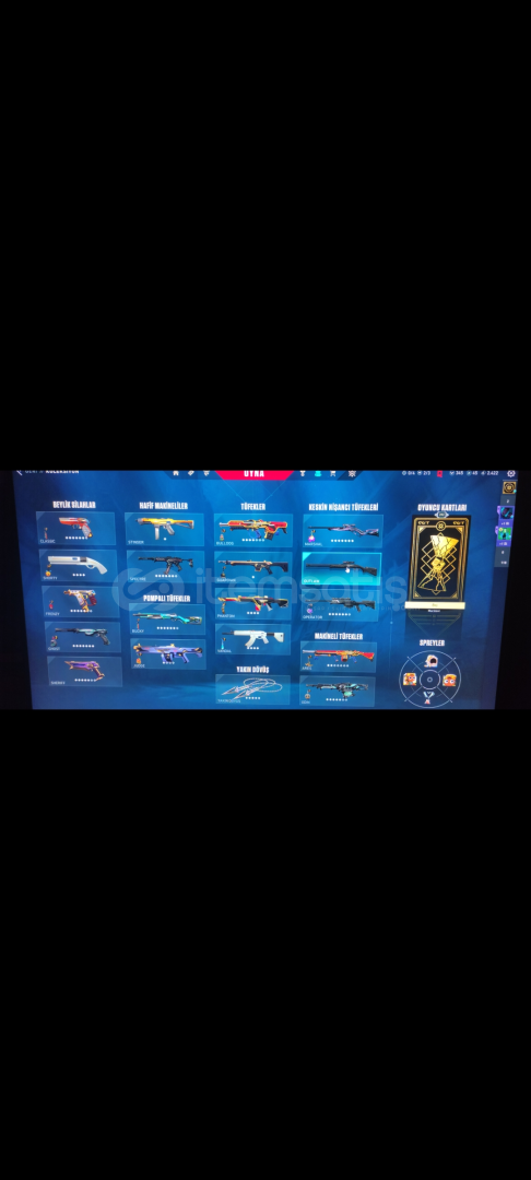 320 Seviye HesapSetler: Champion 2022 ve 2023 , Yağmacı 2 , Oni 2 , Kuronami Bıçaklar: Asil Karambit , Çin Yelpazesi ve Setlerin bıçakları Vandallar: Neptün , Kaos , Yağmacı , Asil , Soğuk Ç. Ve Setlerin vandallarıClassic: Asil Shorty: Neptün Sheriff: Anomali , Seri Tetik ve KuronamiBucky: Asil , SihirpunkGuardian: Gaia Phantom: YağmacıMarshal: Fatih Operatör: Yağm...