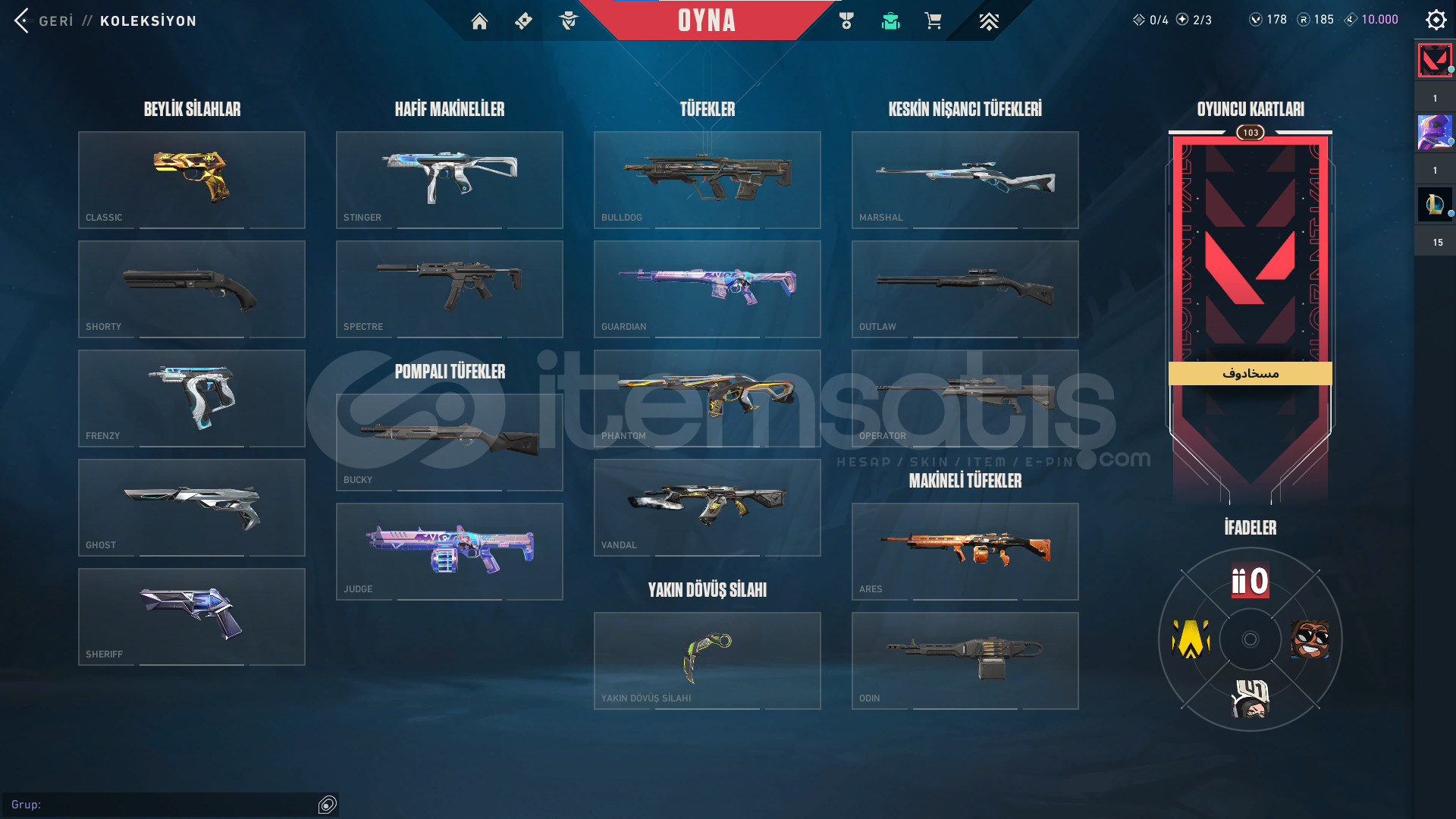 Hesap doludur kendi hesabımdırBBL CLASSİCSOĞUK CELİK BULDOGULUPENCE GHOSTCHAMPİONS 2024 PHANTOMAEMONDIR VANDALASİL VANDALKAOS VANDALMAYMUN VANDALRGX KARAMBİTONİ PENCEVE BATTLEPASS SKİNLERİ