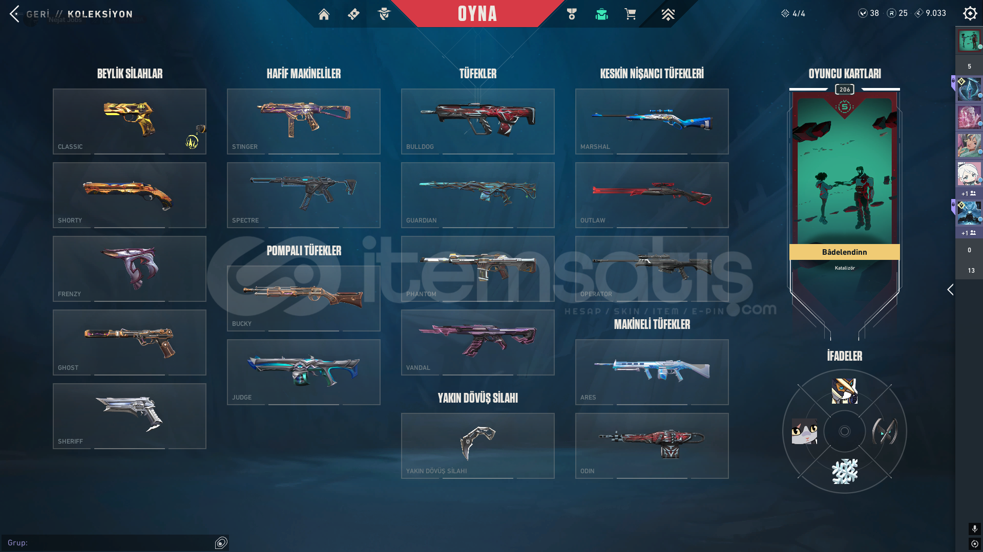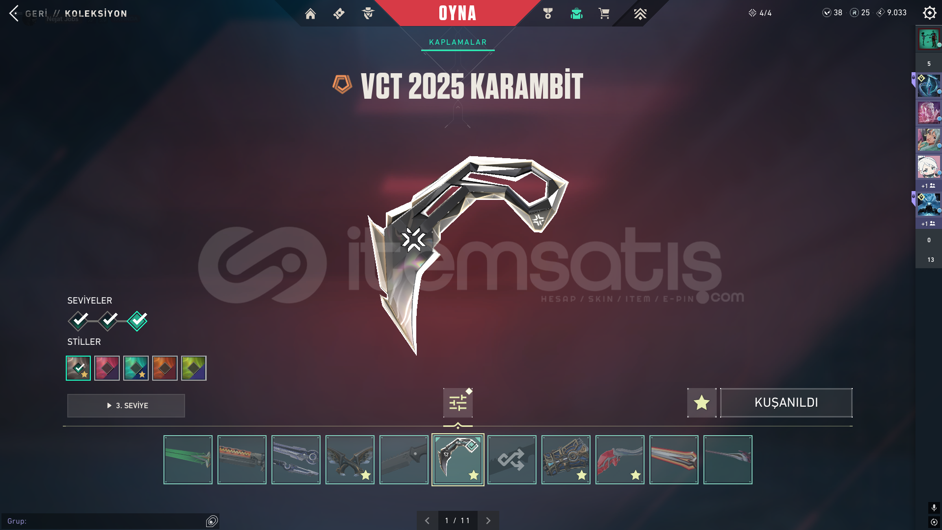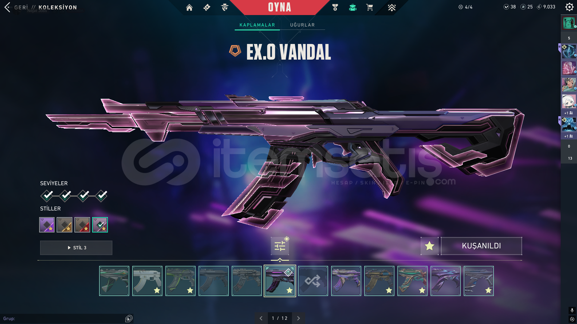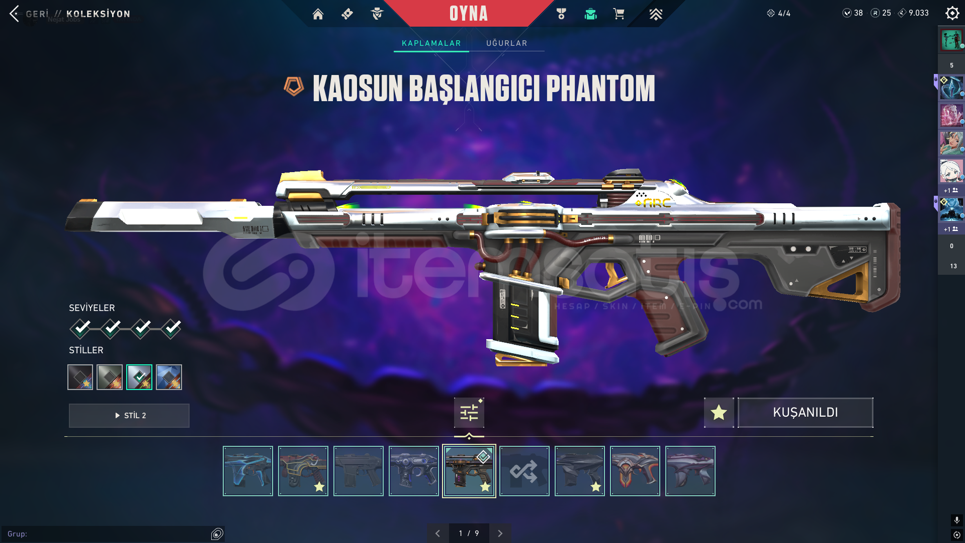 hesapta olan skinler gösükmektedir ilk maili vardır