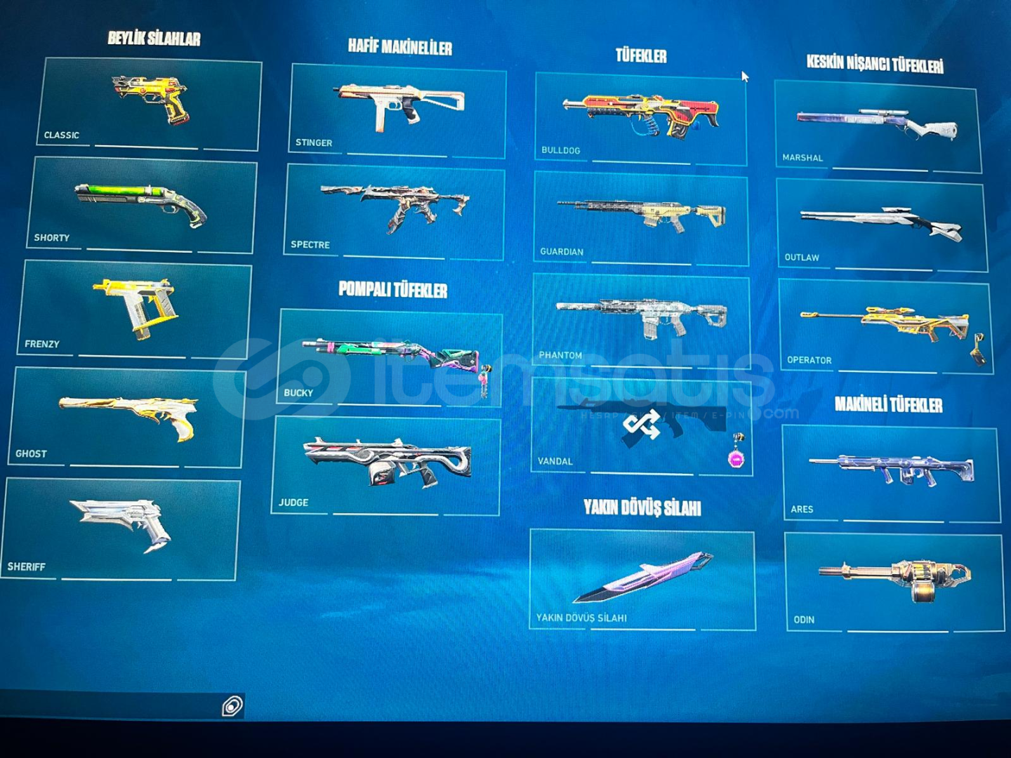 Hesap kendi şahsi hesabımdır. İhtiyacım olduğundan dolayı satıyorum.-ASİL VANDAL-YAĞMACI VANDAL-KAOS VANDAL-EXO VANDAL-ANOMALİ VANDAL-AEMONDİR VANDAL-EVORİ VANDAL-ARCANE VANDAL-YİTİK VANDAL-KURONAMİ VANDAL-ZİFİRİ PHANTOM-PROTOCOL PHANTOM-ÖZEL HAREKAT PHANTOM-ULUPENÇE BIÇAK-KURONAMİ HANÇER-RGX 11Z PRO KARAMBİT-ONİ KATANA-EXO KATANA-SÜRAT CANAVARI KILIÇ...
